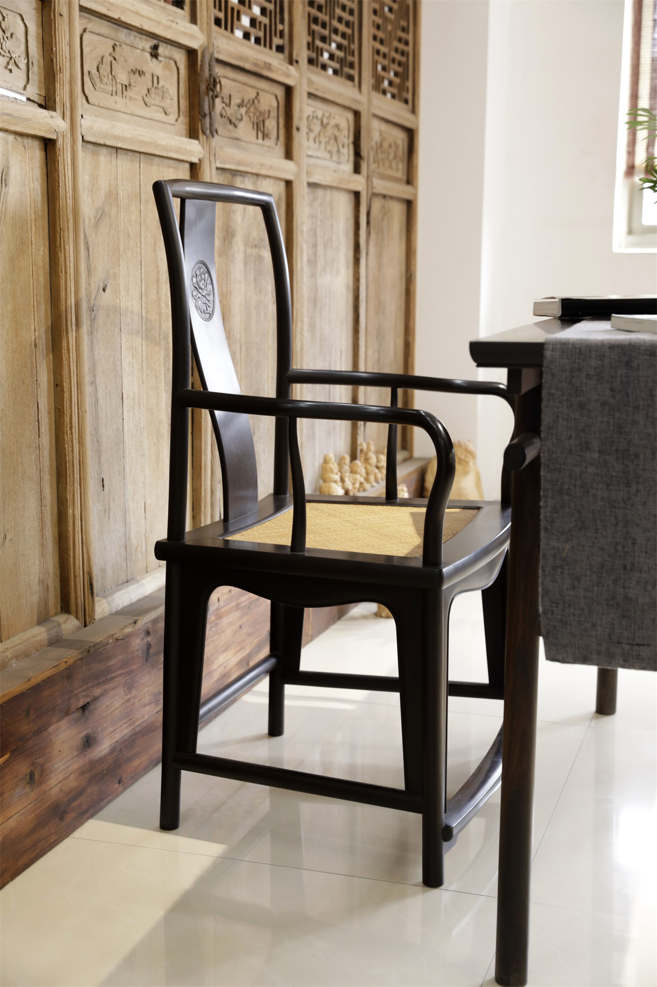 材质:紫光檀,藤编