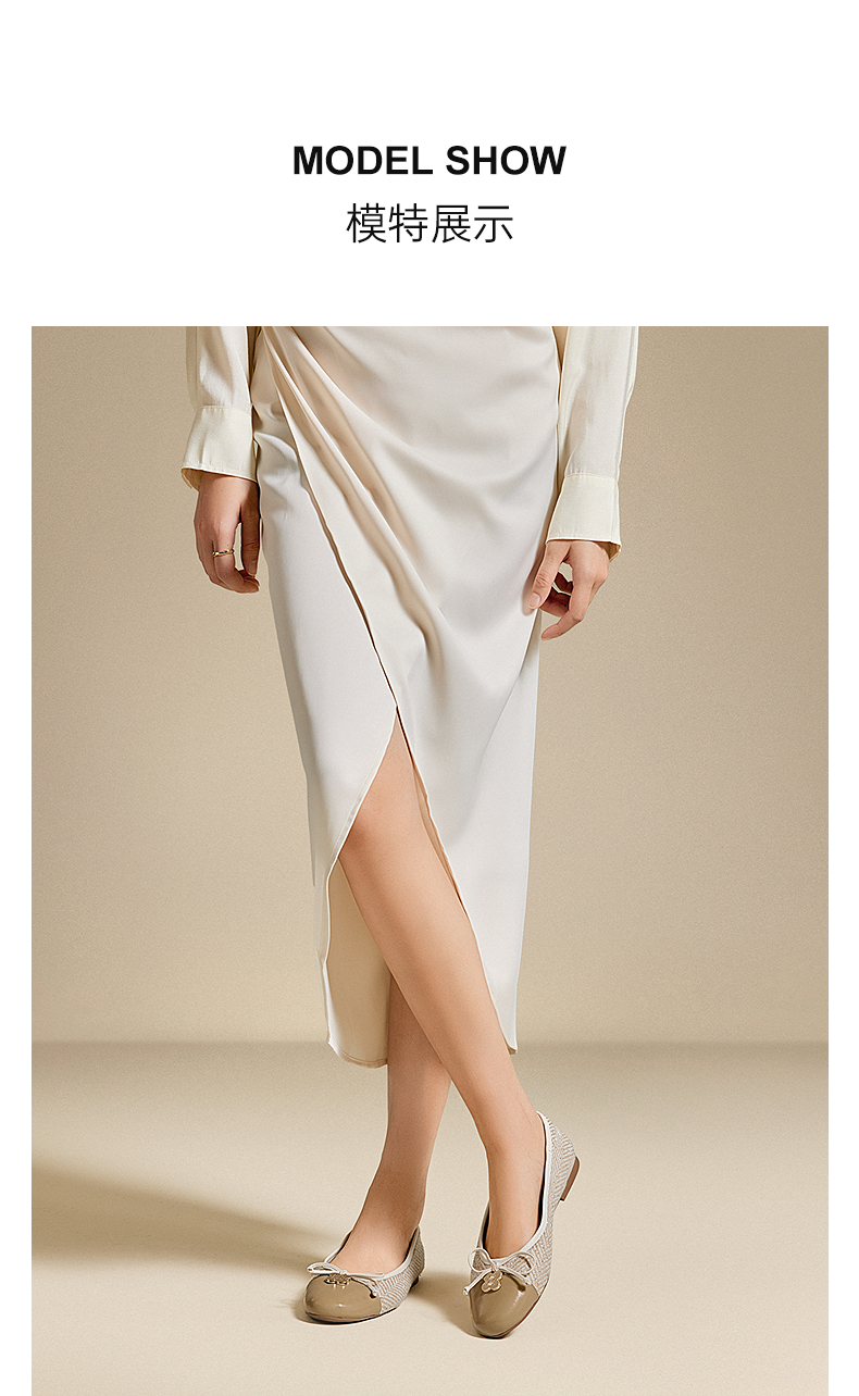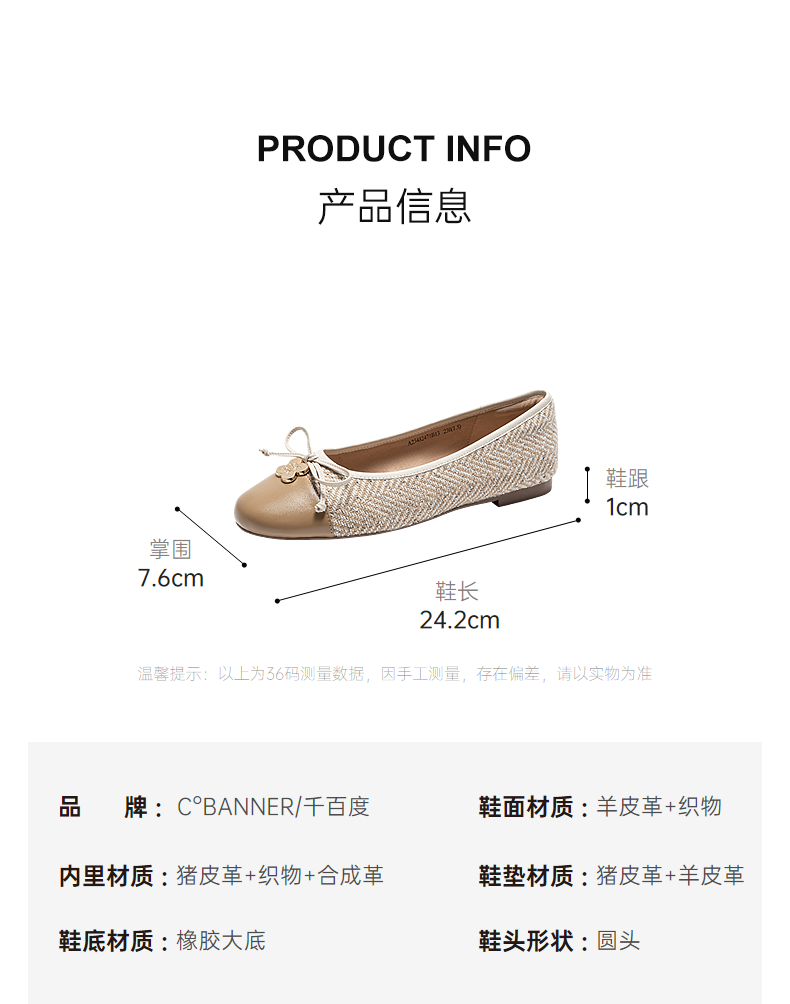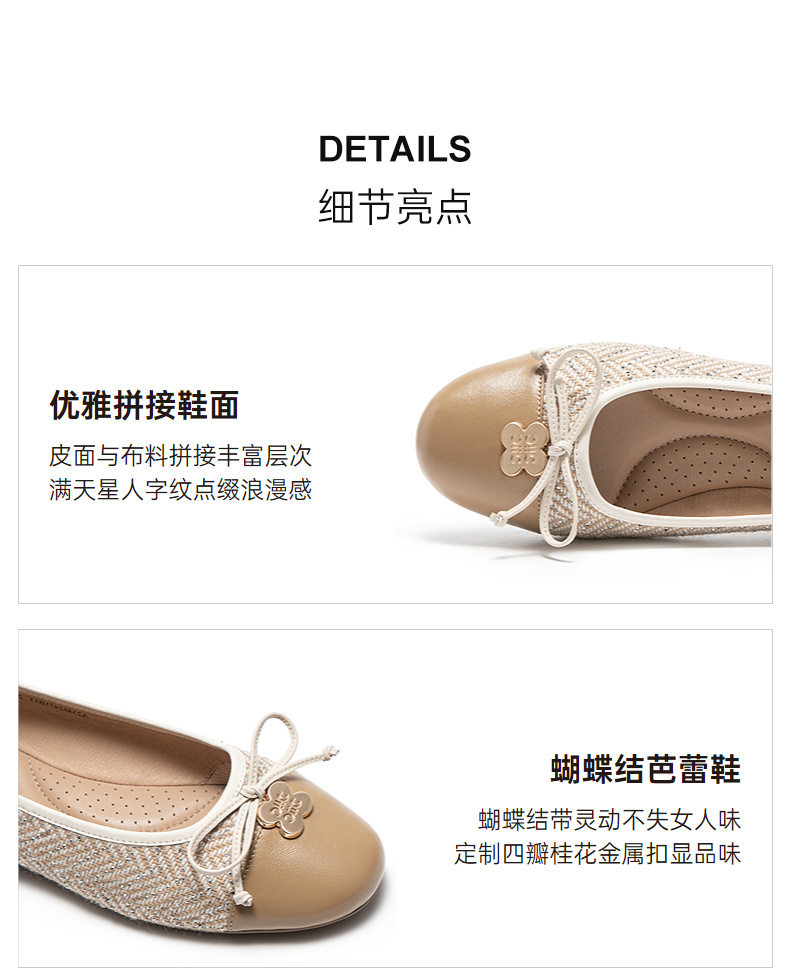 千百度蝴蝶结低跟平底鞋女小香风晚晚鞋拼接浅口单鞋A25482471