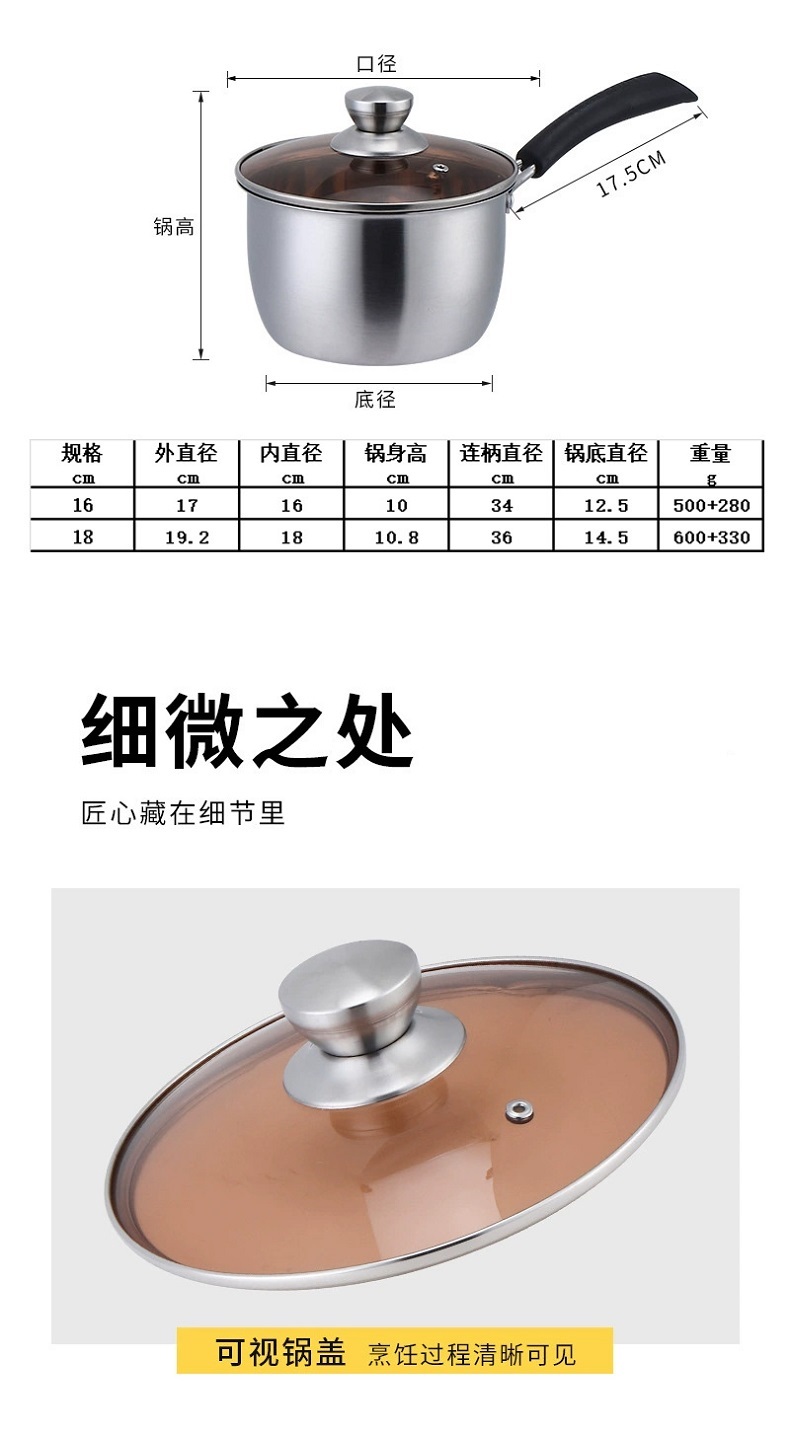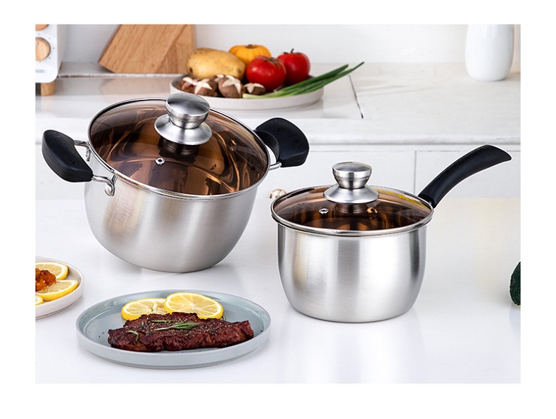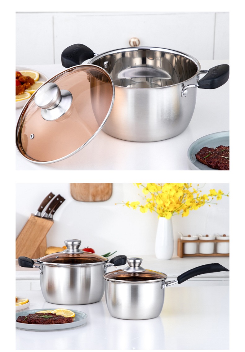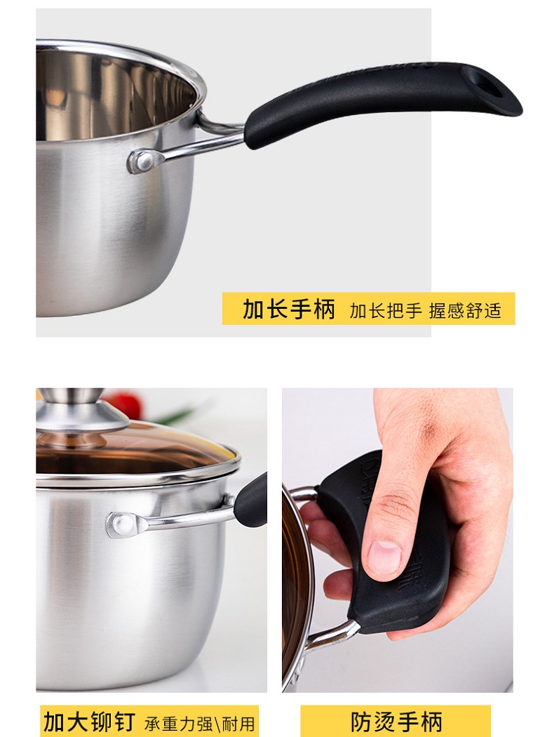 【精选】无磁木柄加厚不锈汤锅奶锅两件套