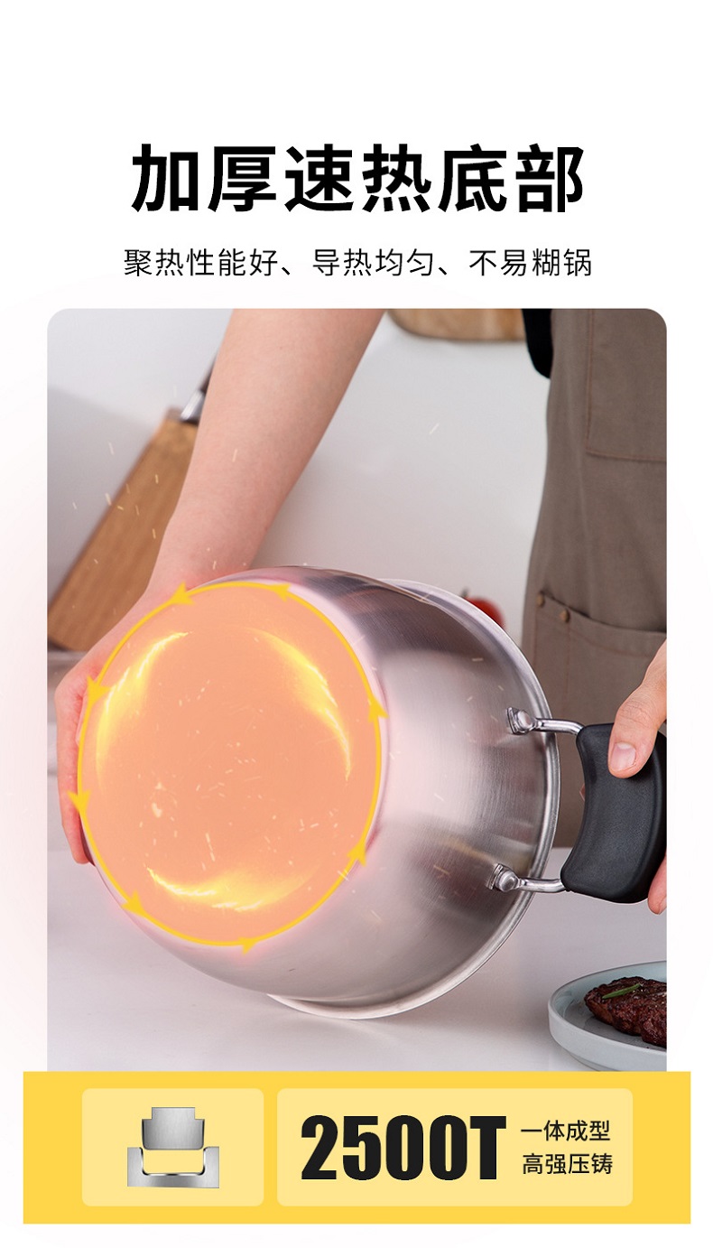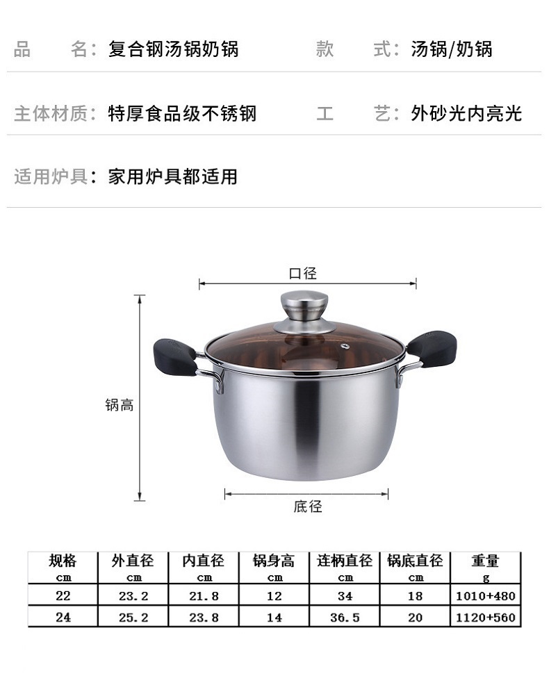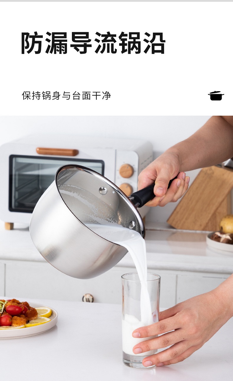 【精选】无磁木柄加厚不锈汤锅奶锅两件套