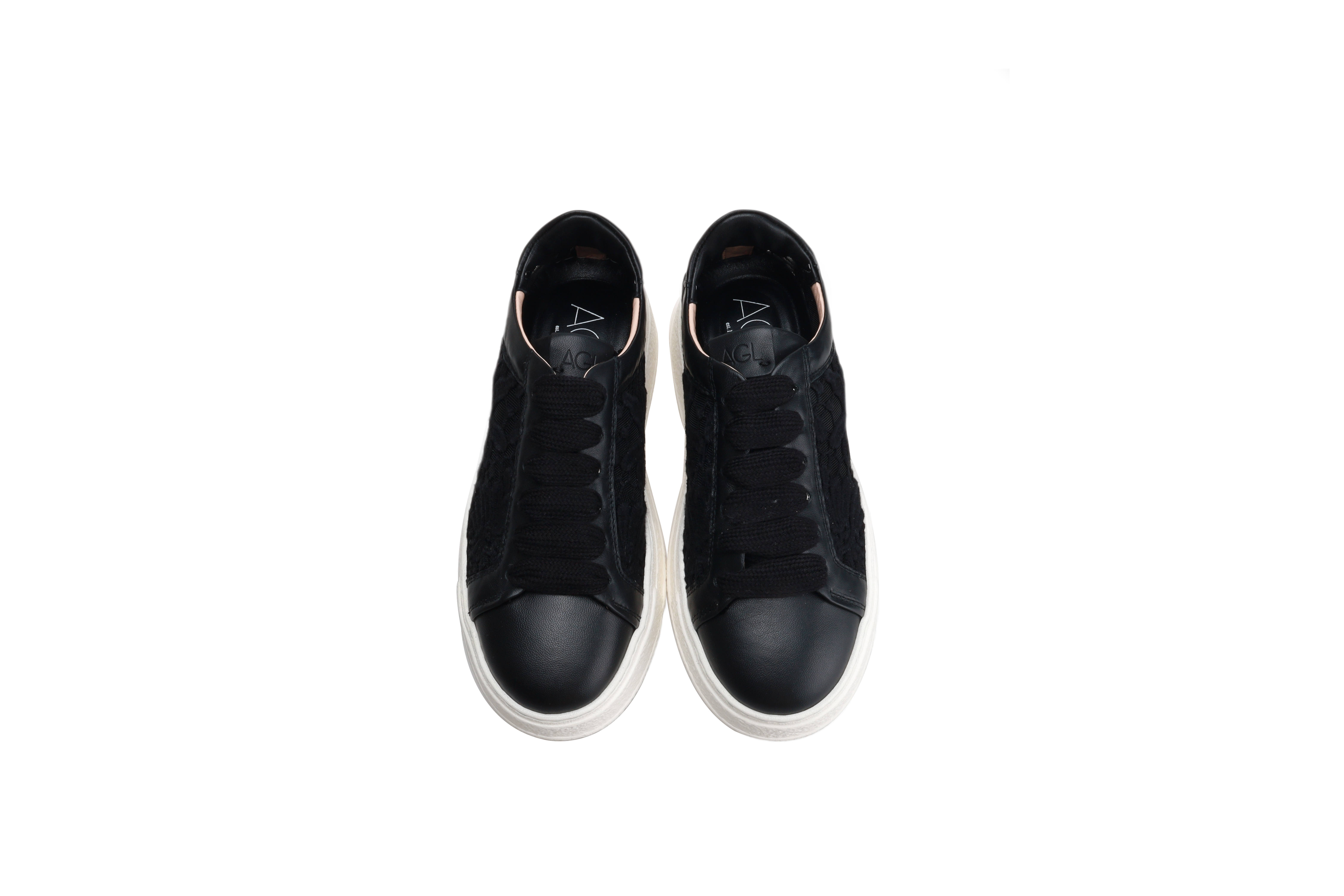 豪麟名鞋AGL女鞋时尚休闲鞋羊皮革+织物D946008黑色