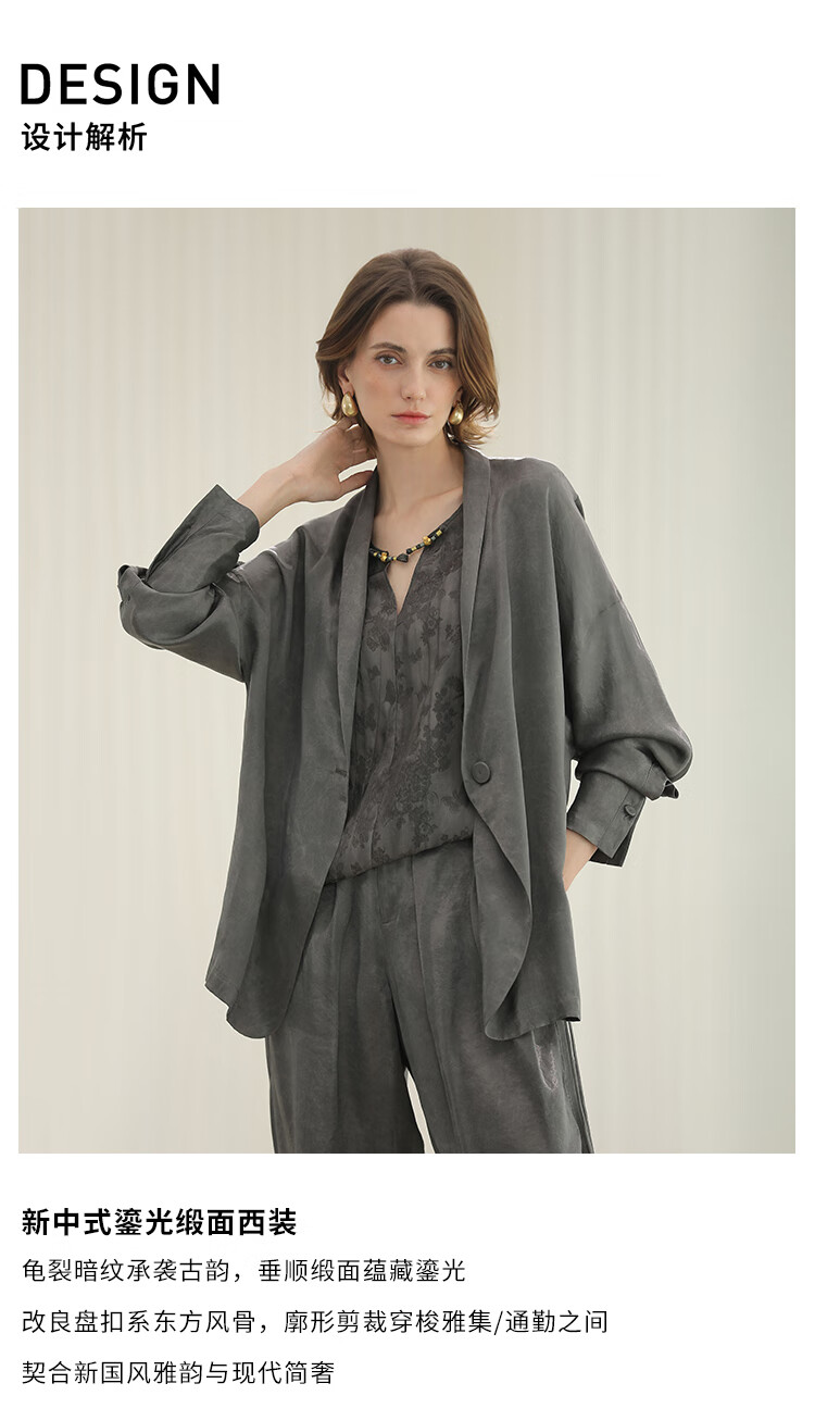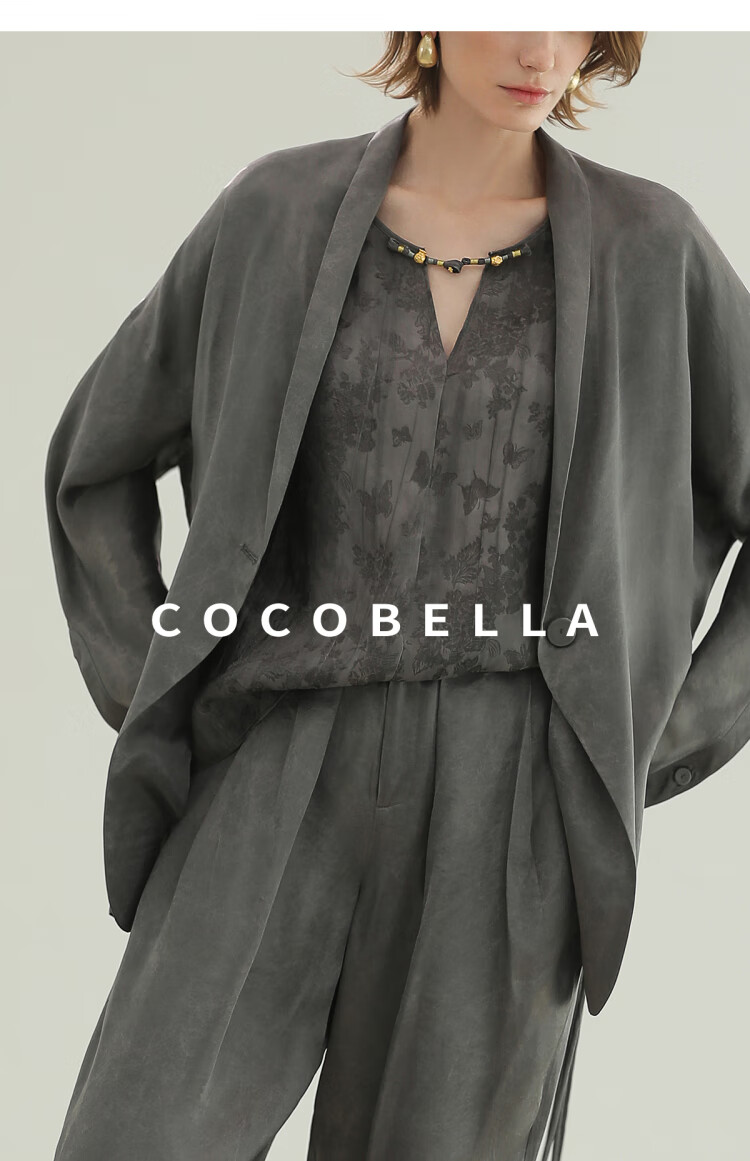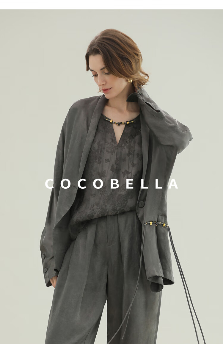 COCOBELLA新国风仿香云纱盘扣外套25春夏流光缎面西装SC3083