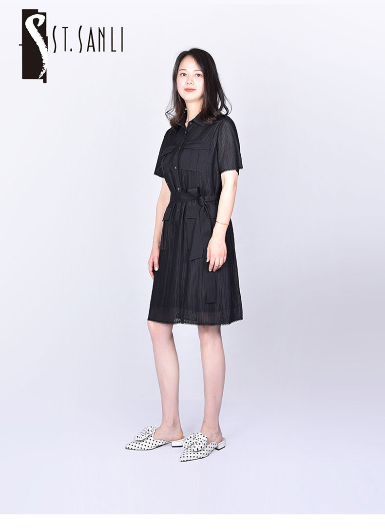 圣三利女装春夏季中长款纯色衬衫连衣裙SL121L31