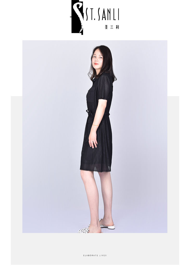 SAINT L’UCK/圣媛女装 气质休闲压褶蕾丝连衣裙SA220L64