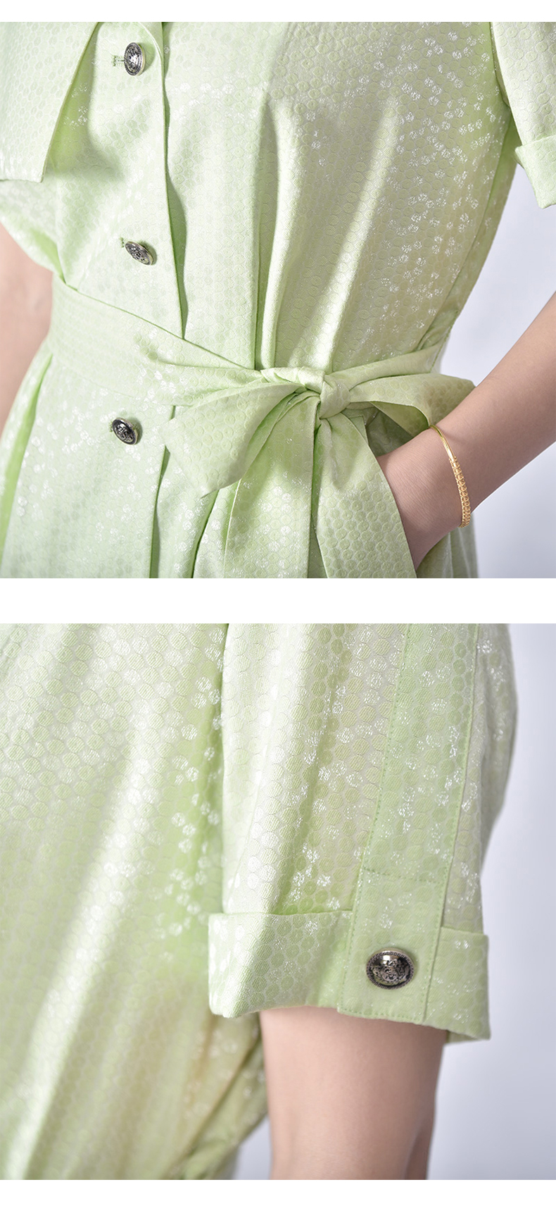 圣三利女装 超仙中长款树叶印花圆领雪纺连衣裙SL2027241