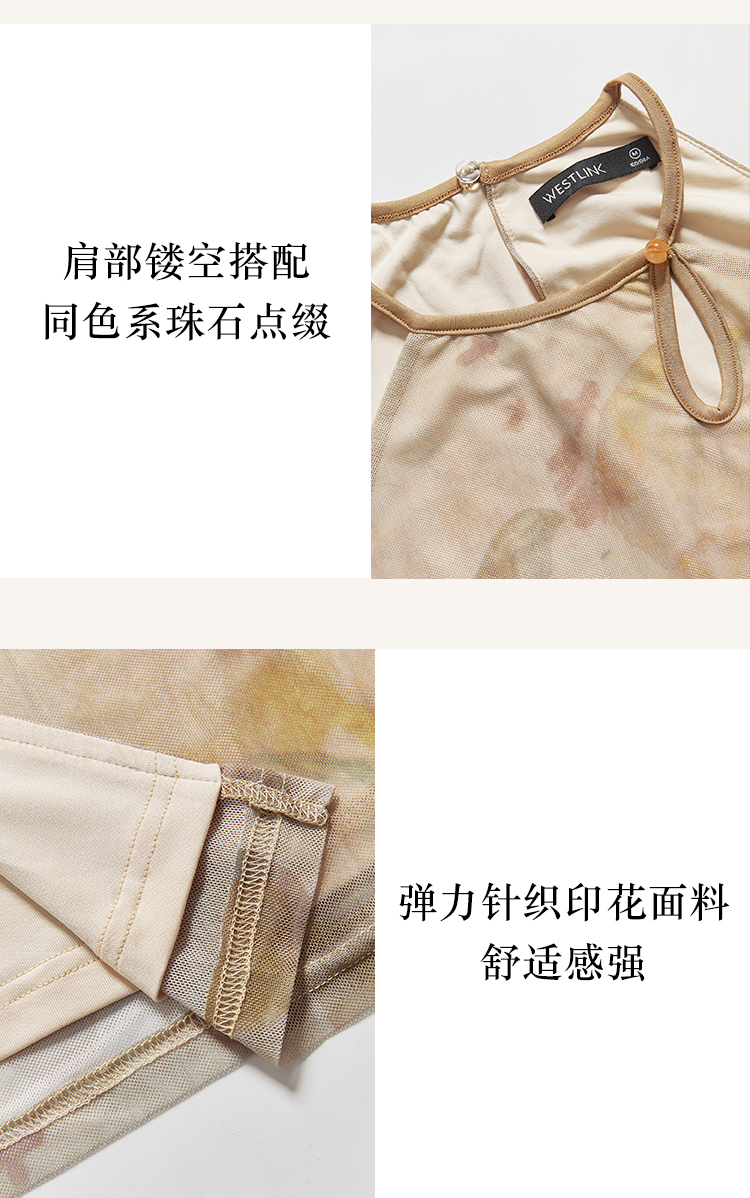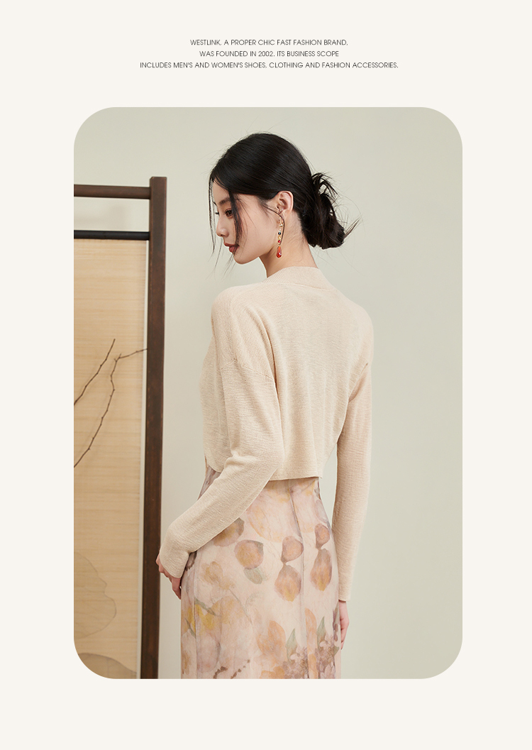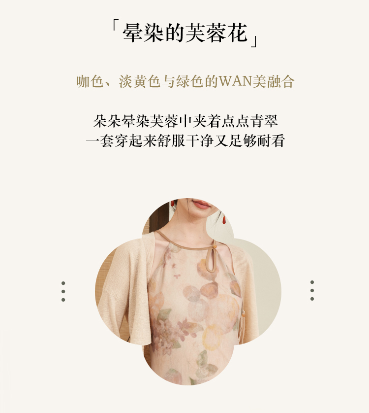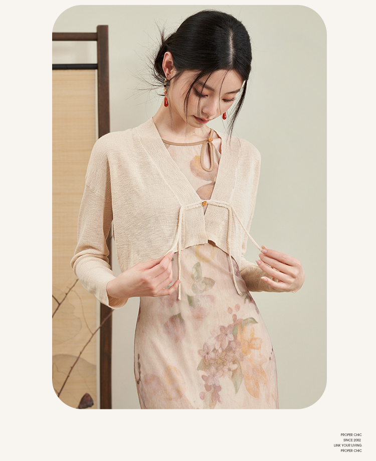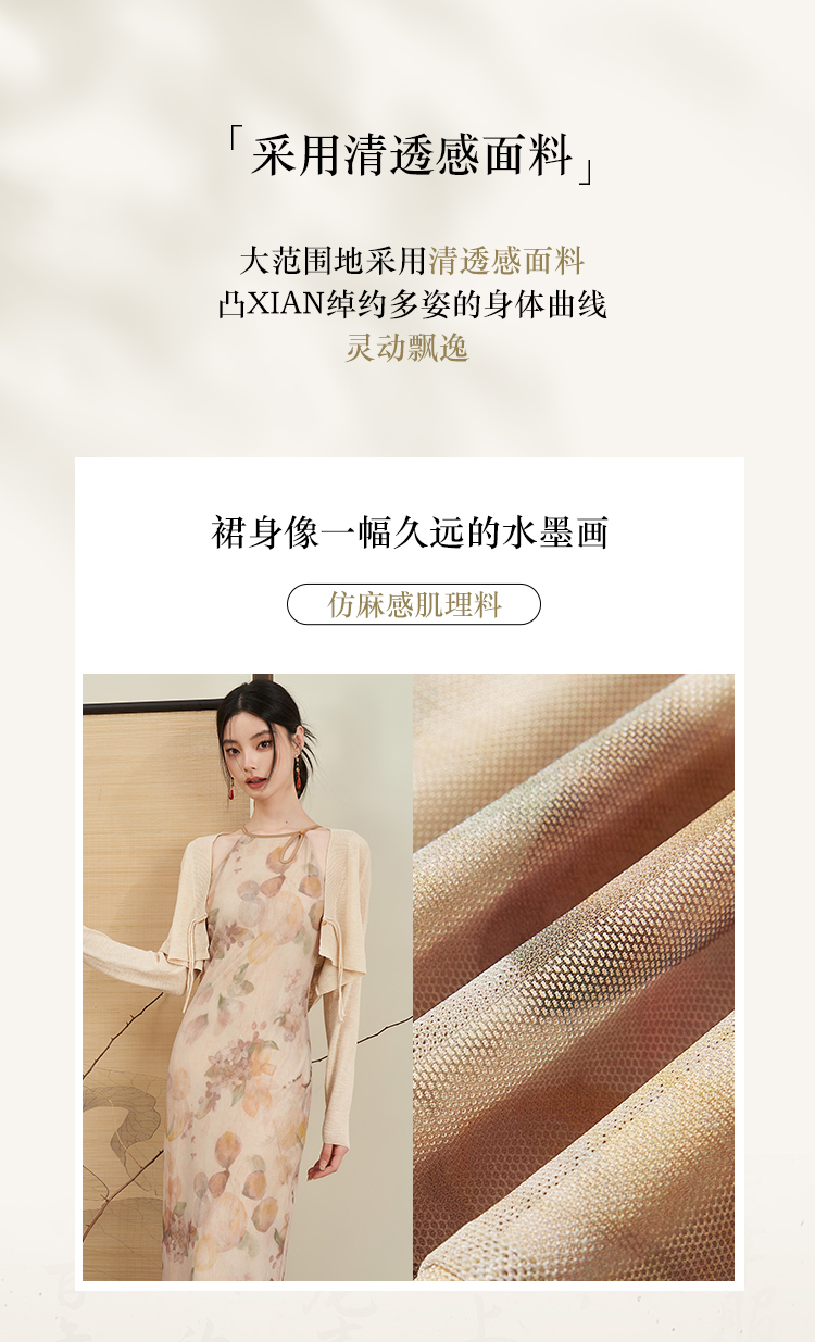 西遇杏色国风气质两件套连衣裙女新款挂脖修身裙配薄开衫D0640373