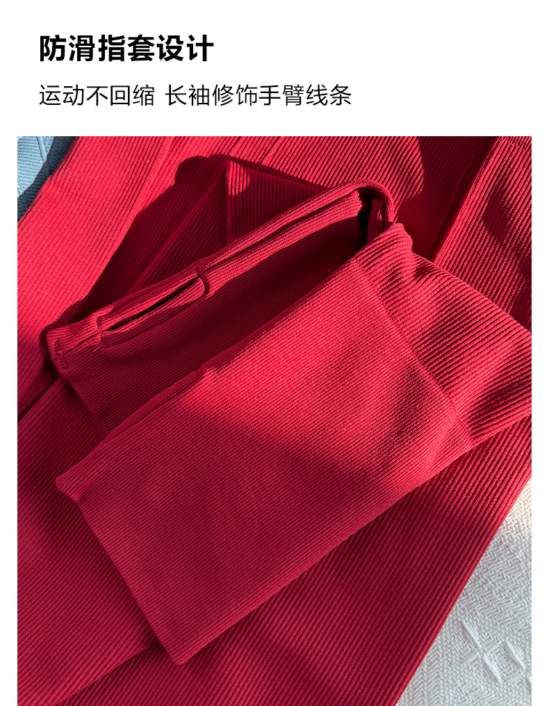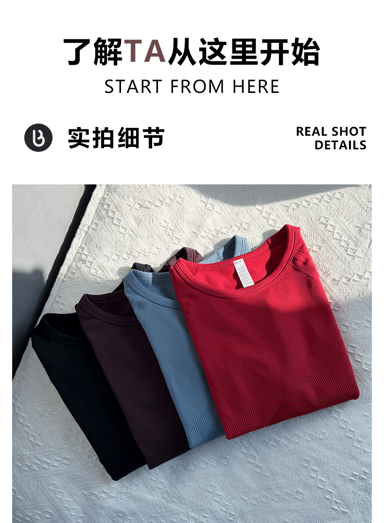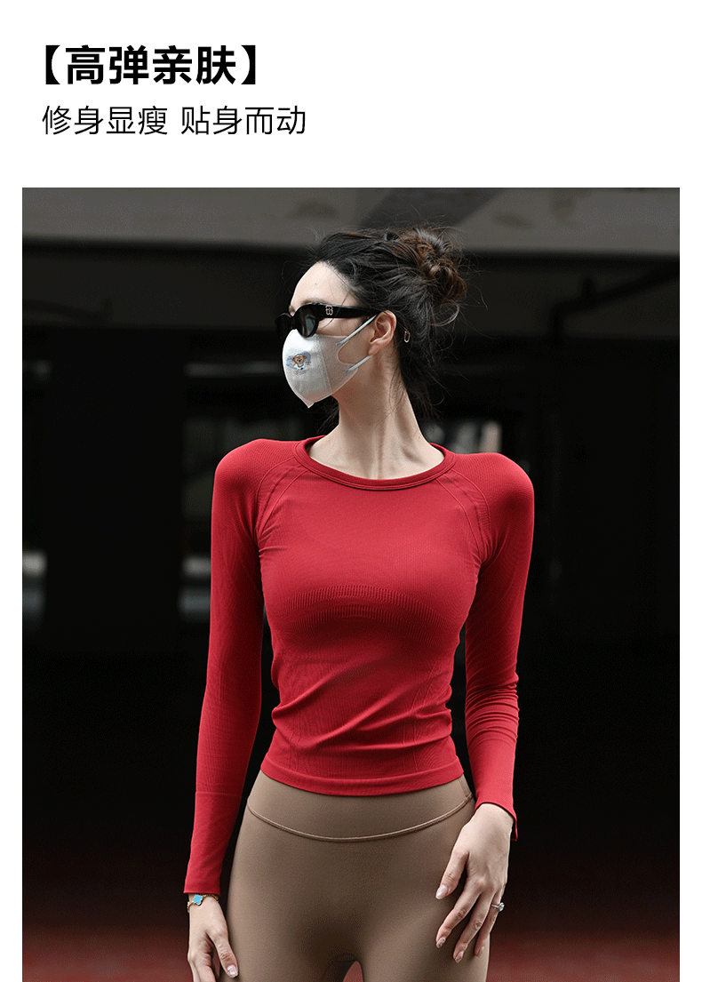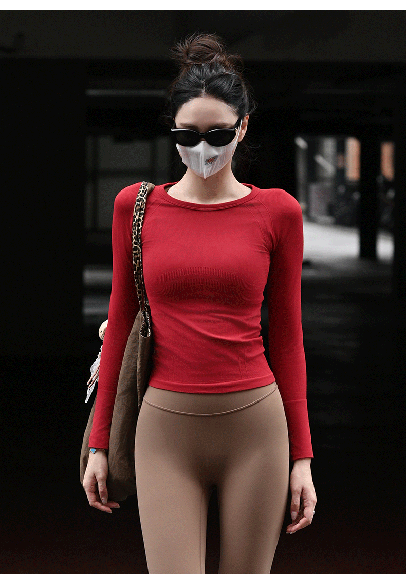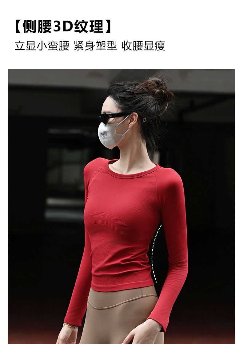 Beemen新款秋冬瑜伽服女 侧腰3D修身纹理更有型 长袖圆领健身衣 跑步普拉提训练舒适上衣