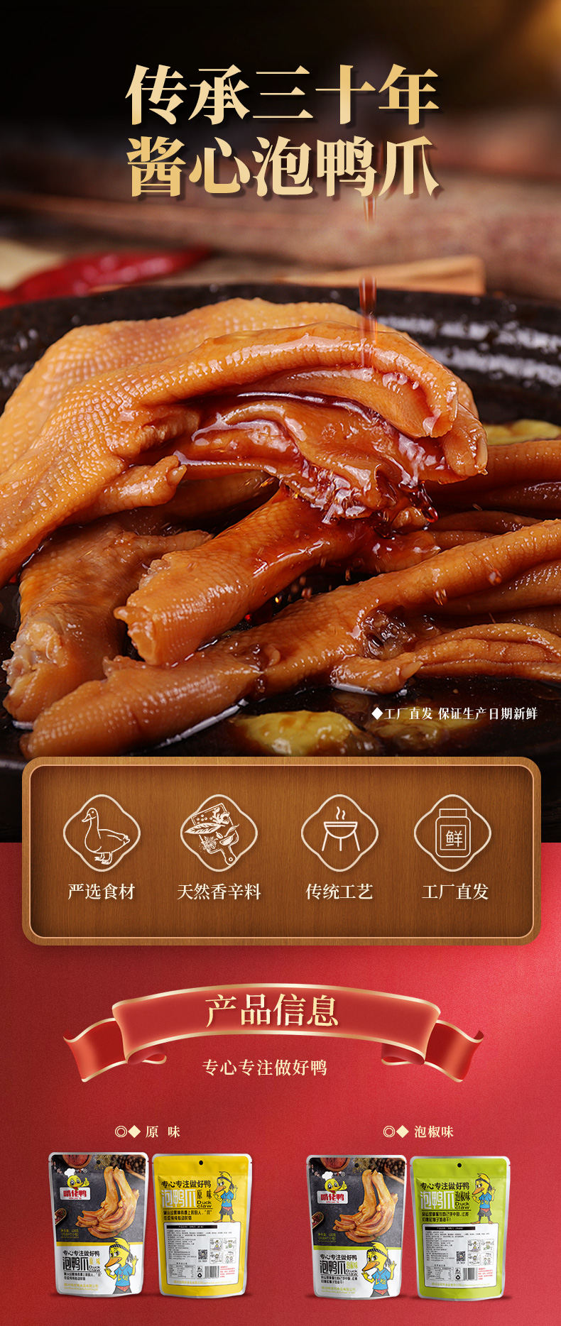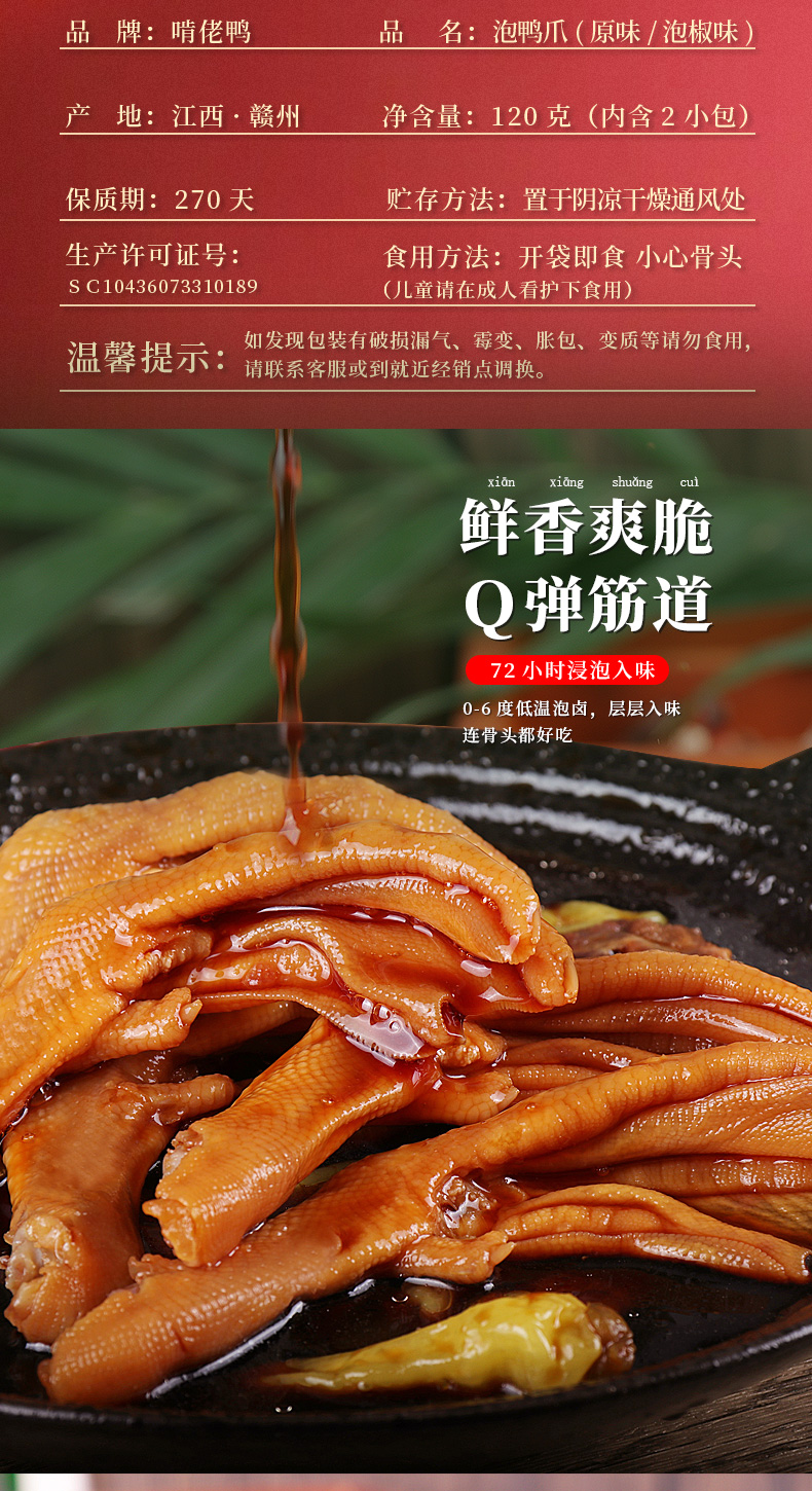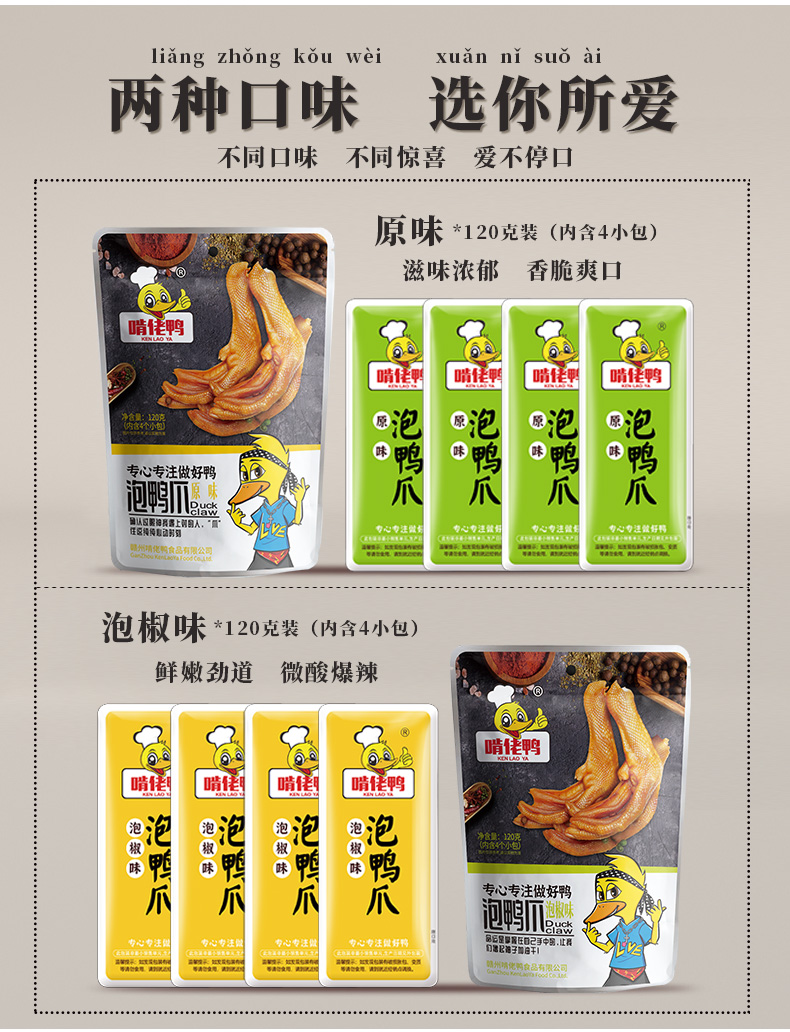 啃佬鸭泡鸭爪120g袋装江西赣南特产真空泡椒卤味泡椒鸭掌脚小包零食