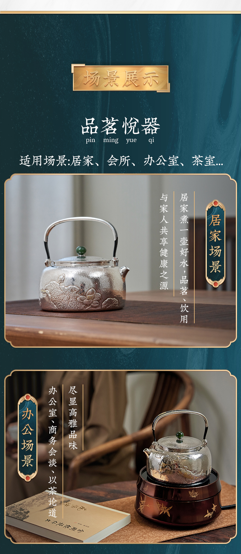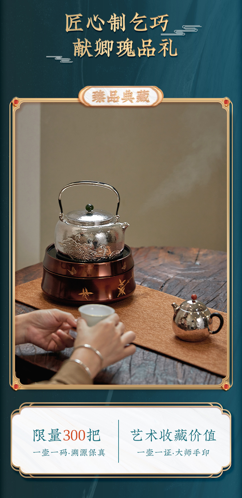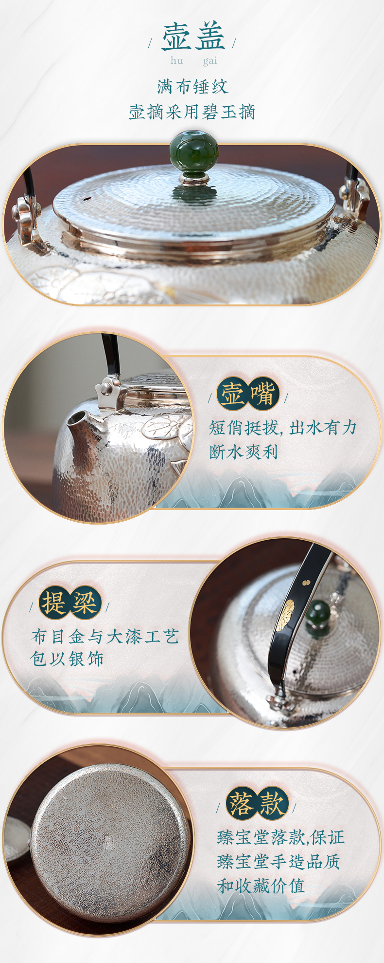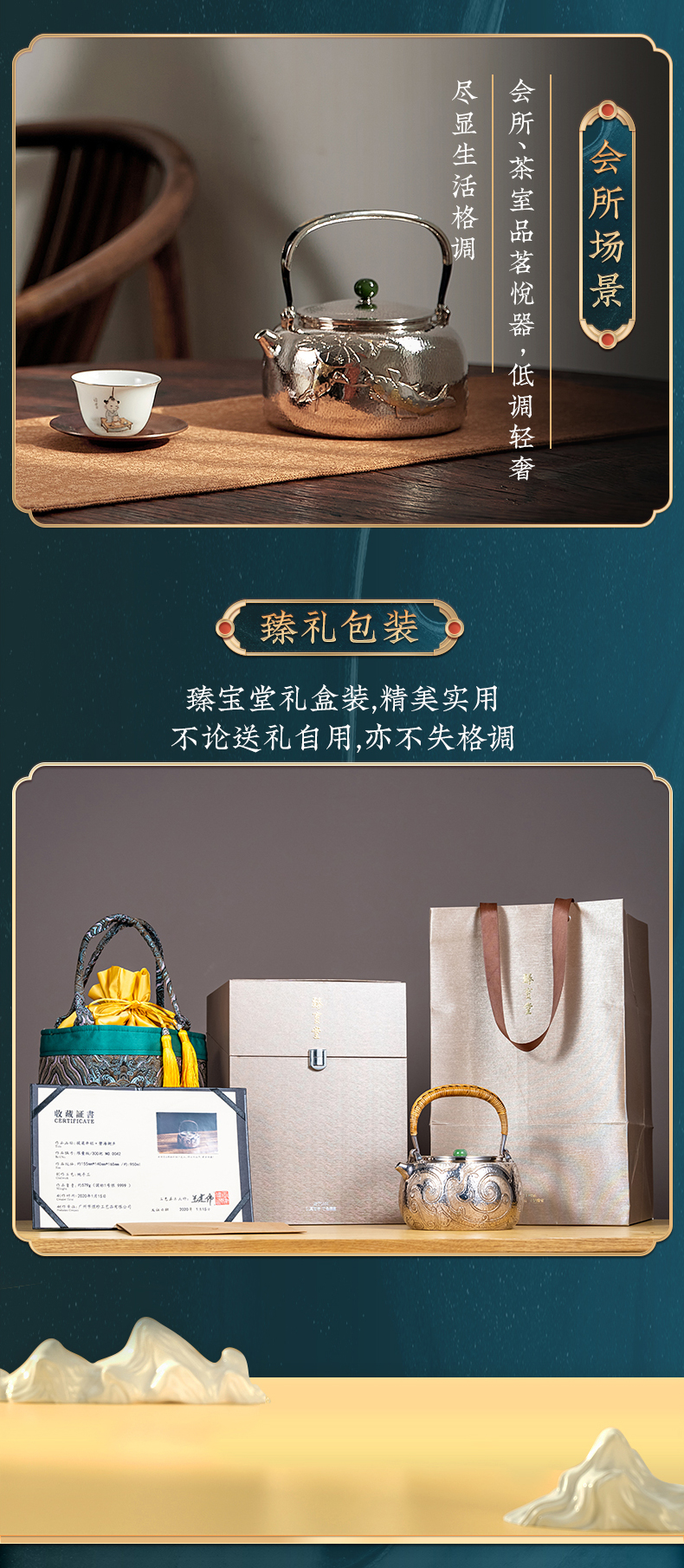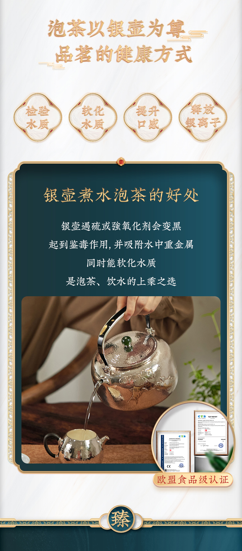 臻宝堂春江戏鲤(布目金)银壶(约900ml)
