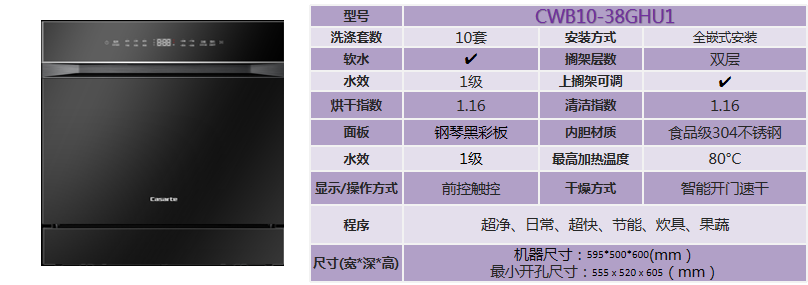 卡萨帝嵌入式洗碗机(CWB10-38GHU1)