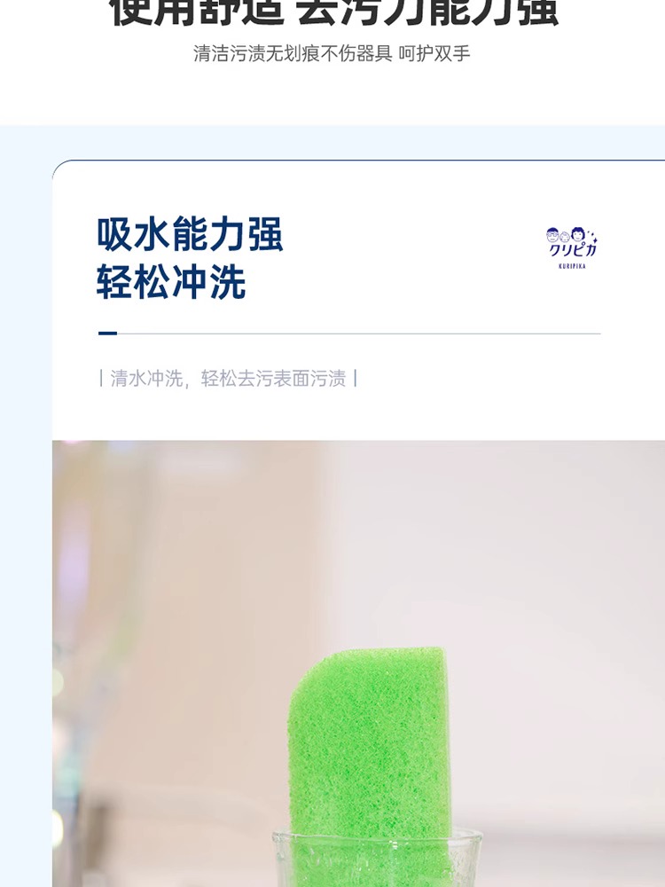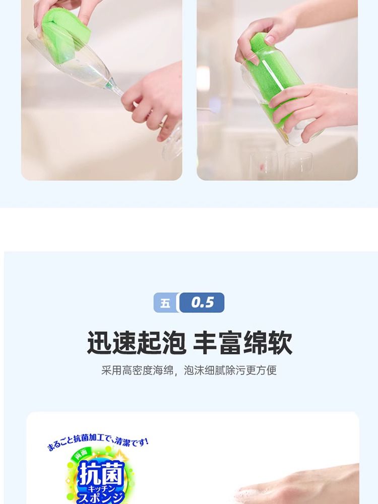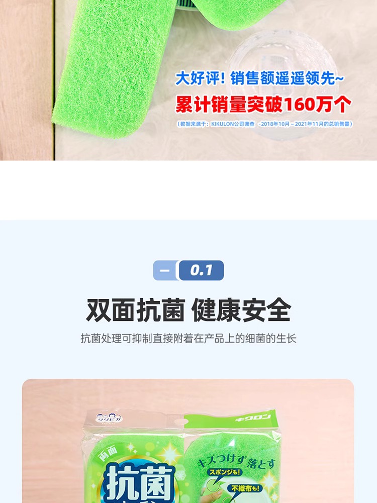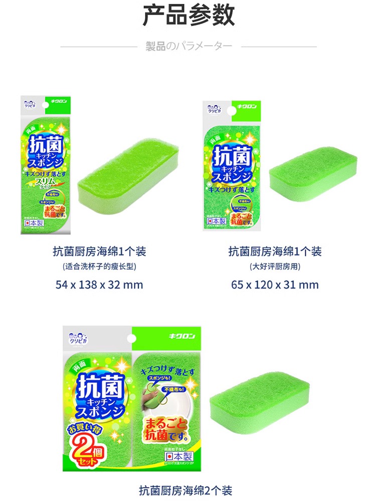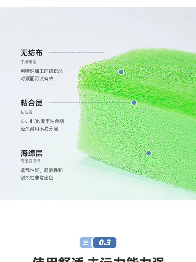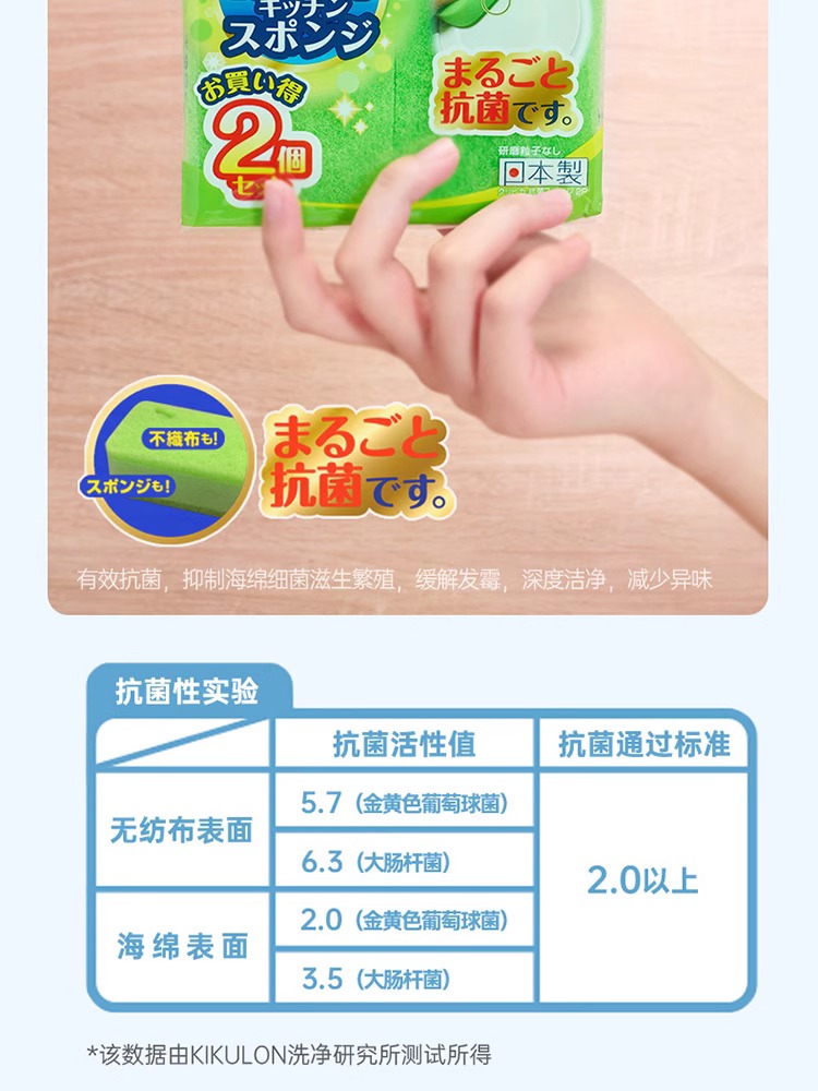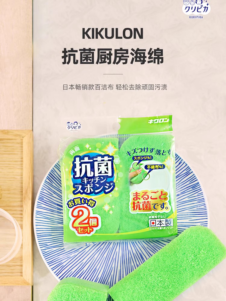 KIKULON/吉酷隆抗菌尼龙厨房高档酒具清洗百洁布去污家用绿色海绵