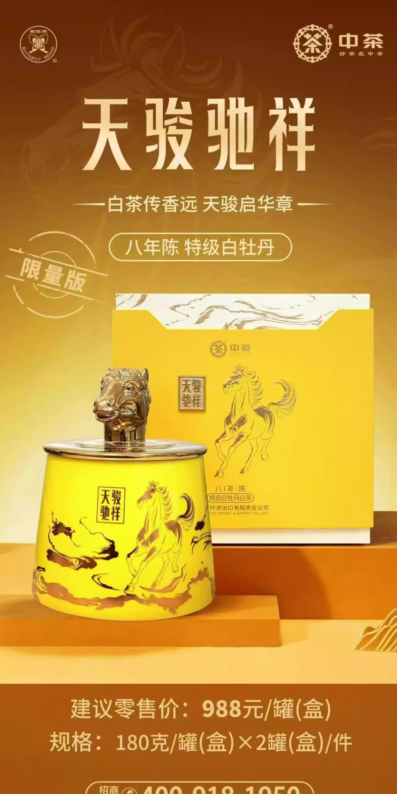 中粮-中茶2026年中茶蝴蝶天骏驰祥马年生肖限量版白牡丹白茶180g礼盒版