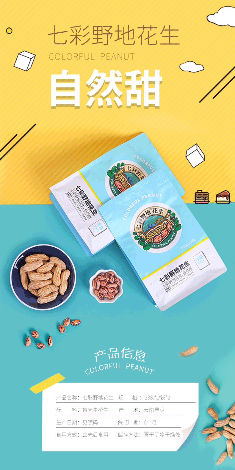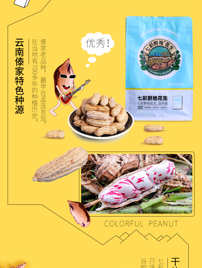 七彩野地原味生花生238g*3袋