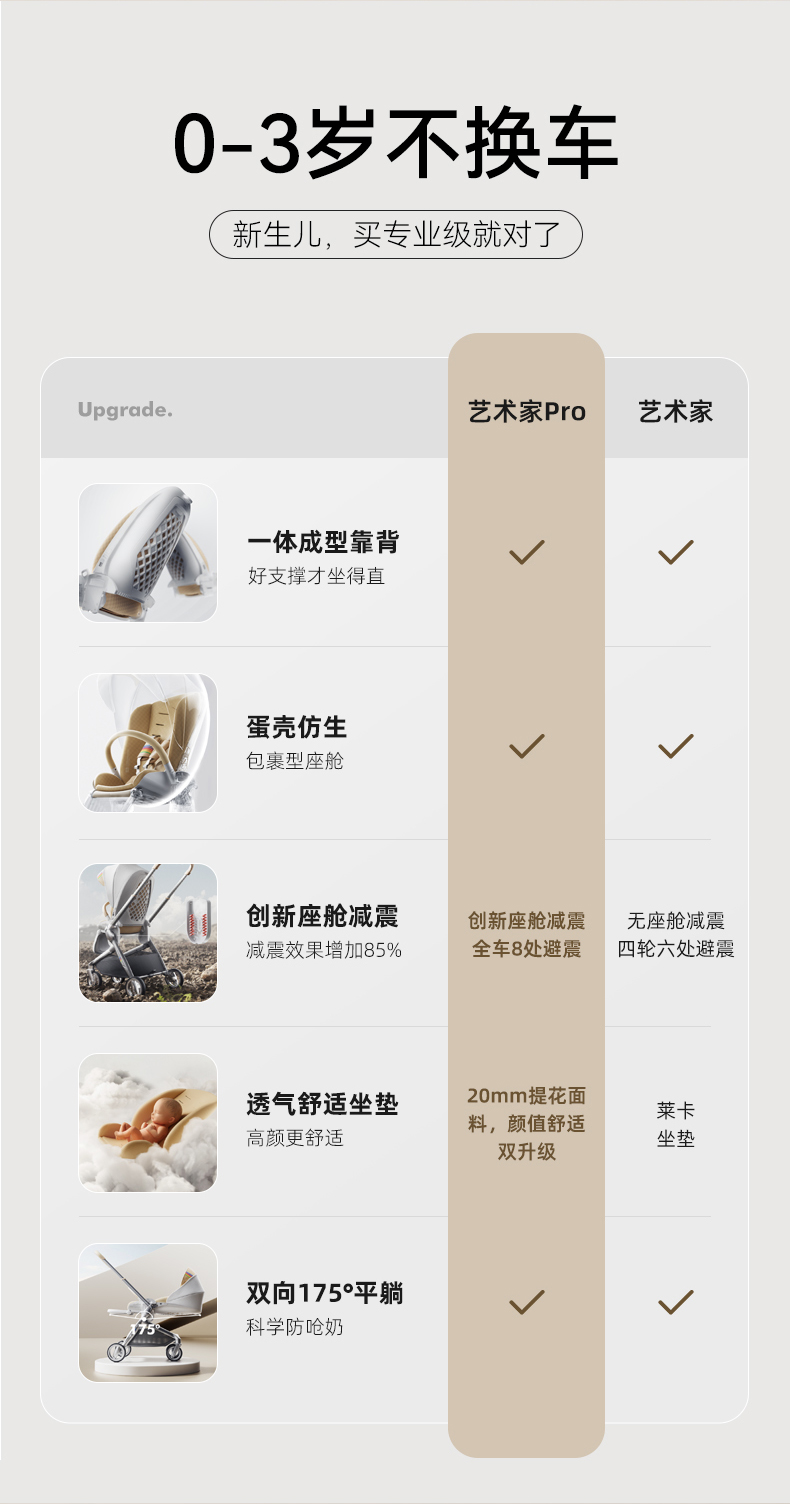 BeBeBus艺术家婴儿推车 新生儿护脊轻便折叠双向高景观推车(适用0~3岁)