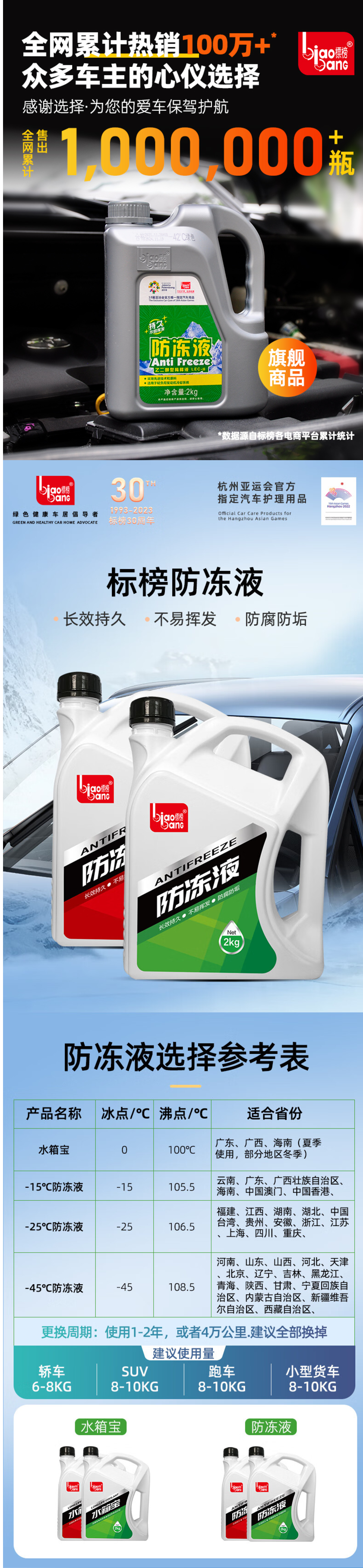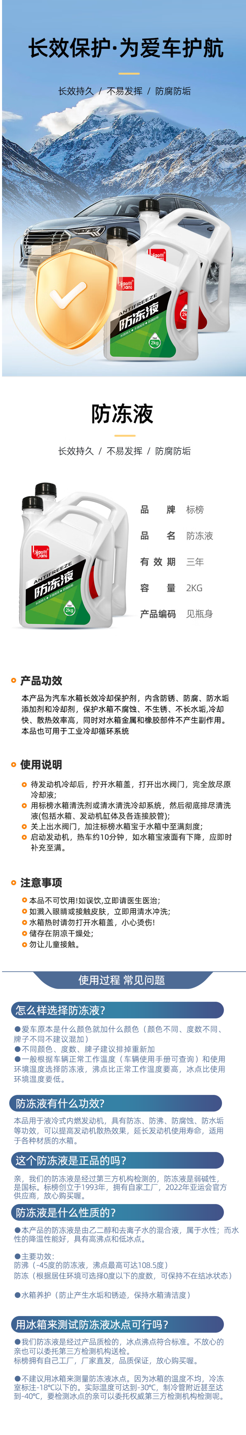 标榜(biaobang)汽车发动机防冻液冷却液水箱宝四季通用冷冻液-45度绿色2kg 100000062153