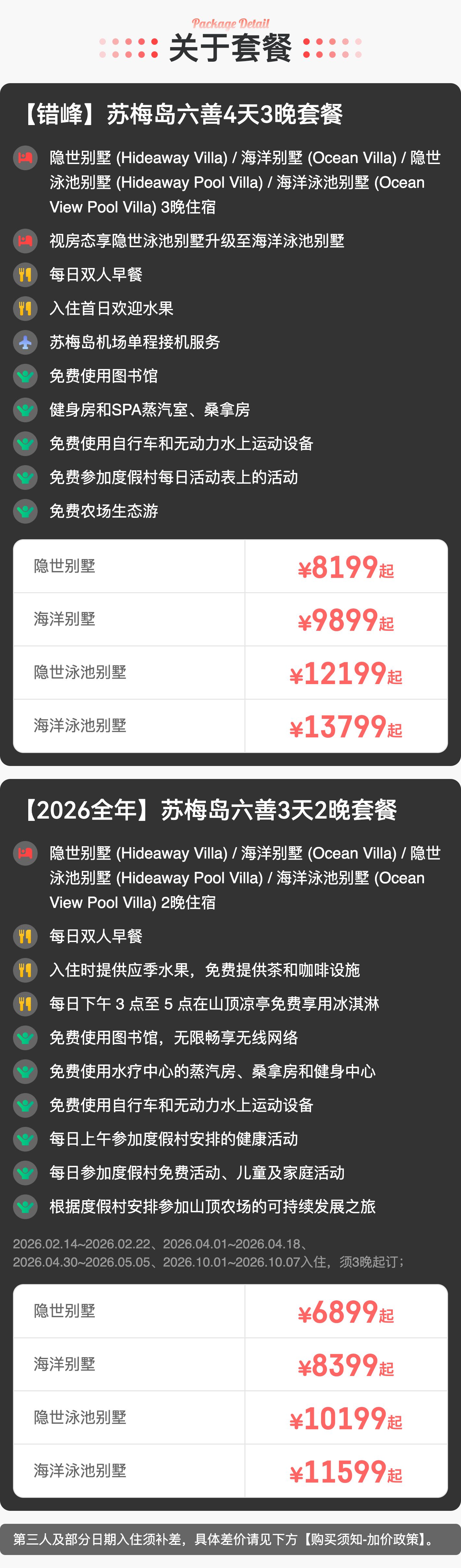 2晚/3晚【苏梅岛六善 | Six Senses Samui】错峰限时好价/2026全年套餐!入住130㎡别墅/160㎡泳池别墅,享岛上丰富娱乐活动~赠苏梅岛机场接机服务!