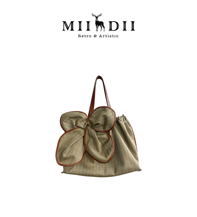 谜底单肩包女2025秋季新品大容量格纹包立体花设计包包253MQ1404