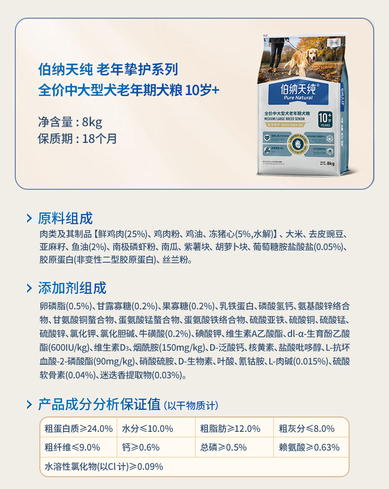 伯纳天纯旗舰老年犬狗粮柯基雪纳瑞小型中大型犬全价老年期专用狗粮10+