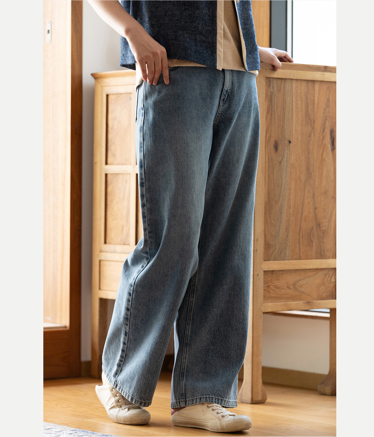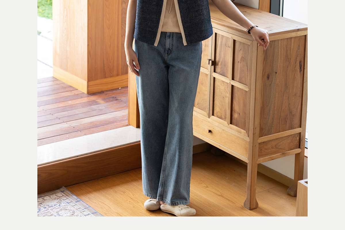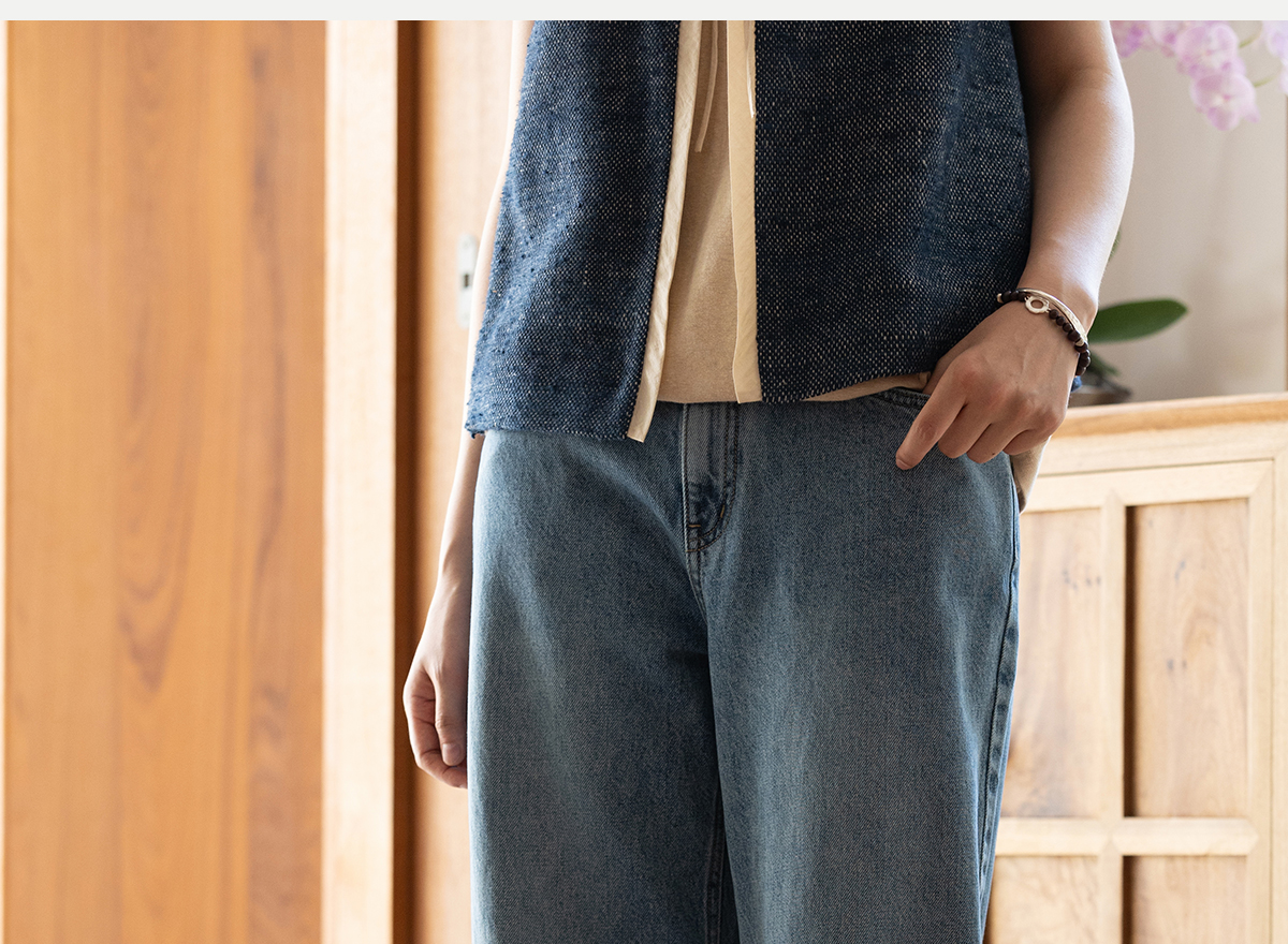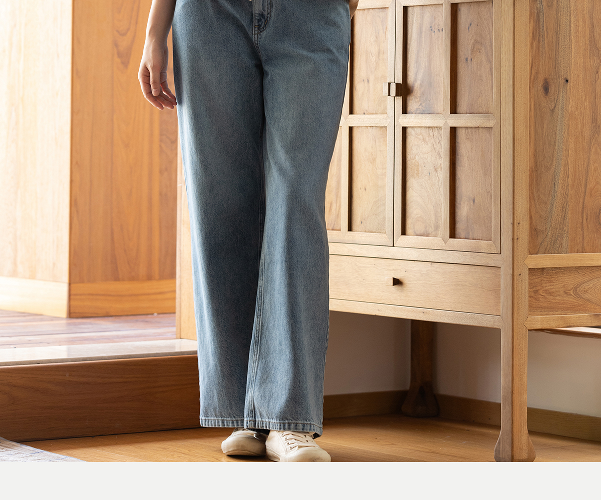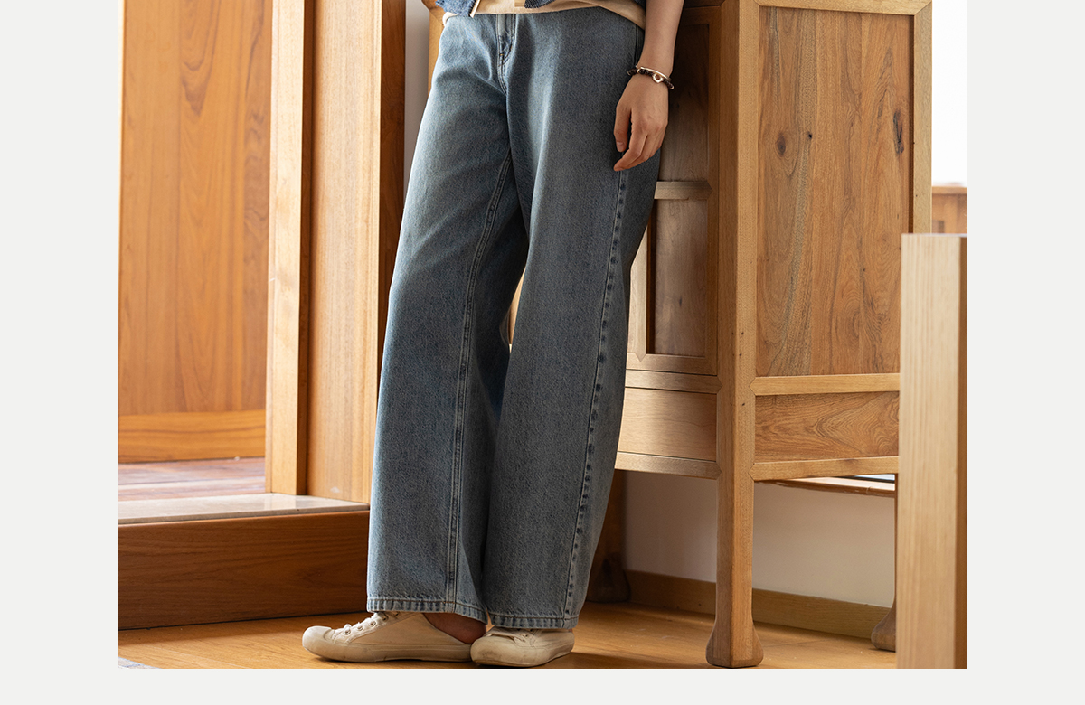 牧衣游原创 纯棉牛仔直筒裤轻薄显瘦复古耐穿宽松百搭休闲裤 碧深