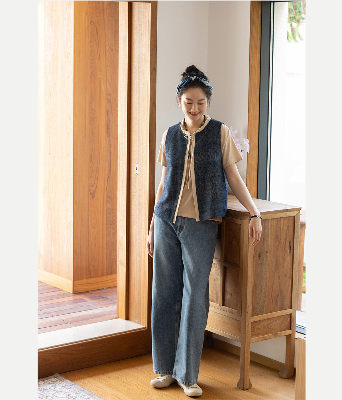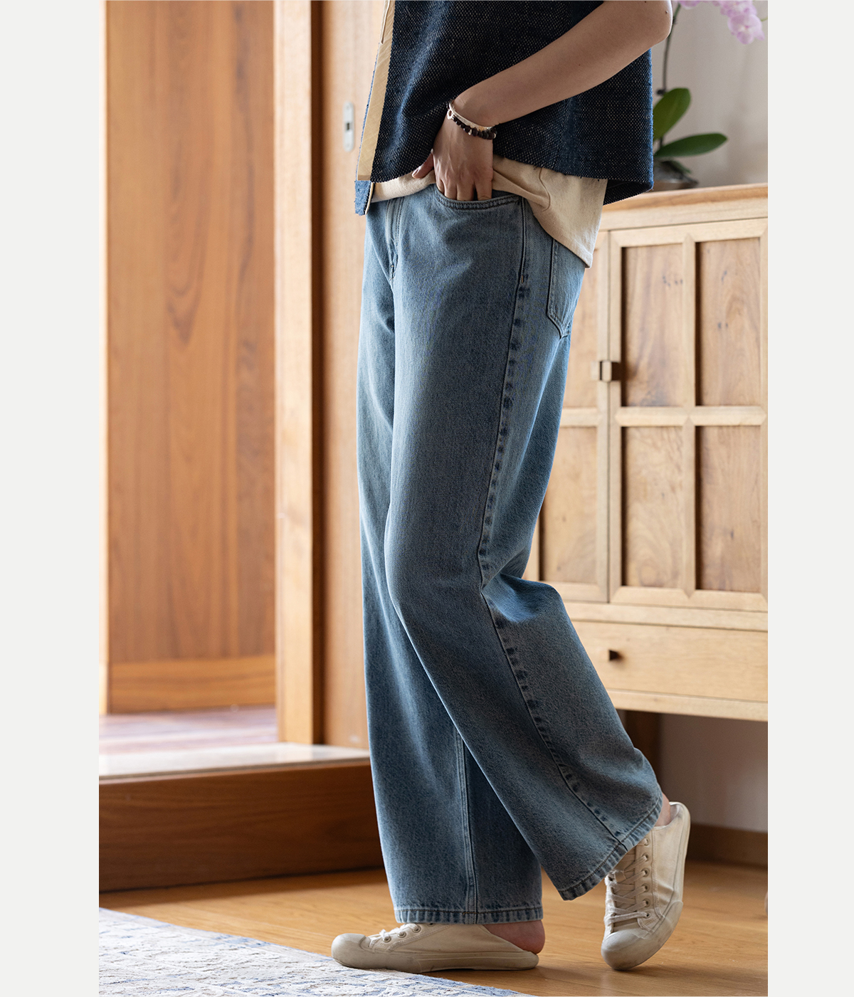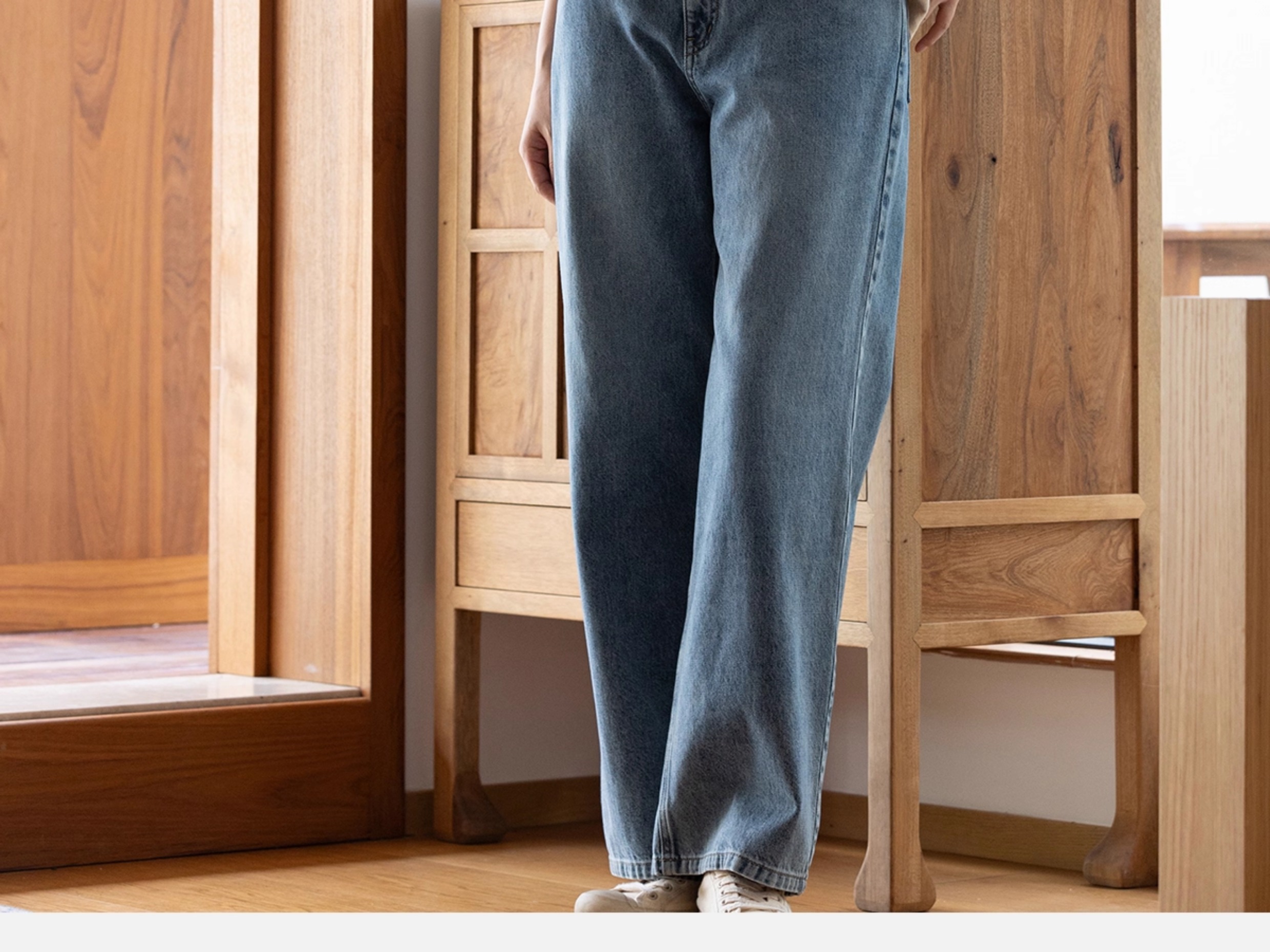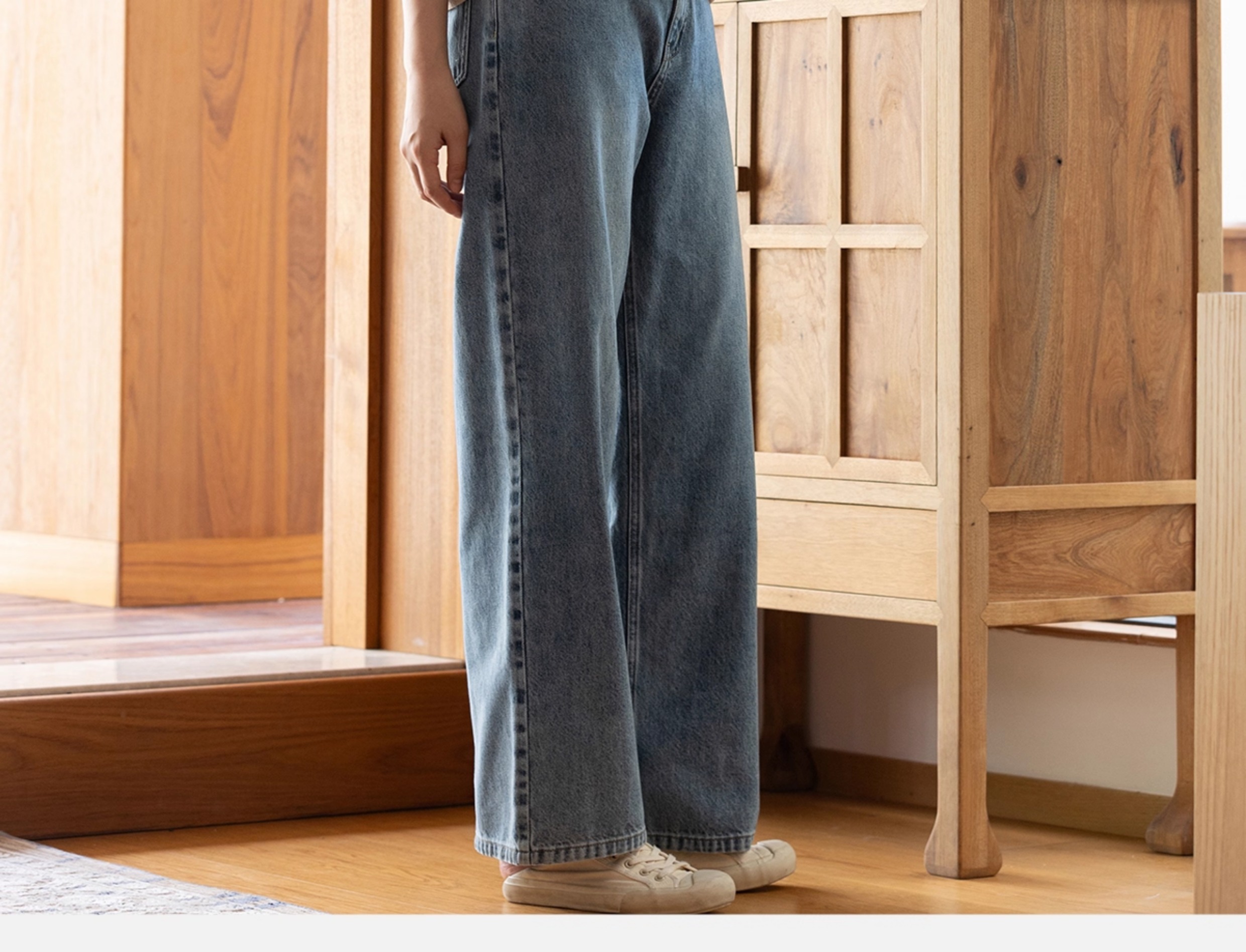 牧衣游原创 纯棉牛仔直筒裤轻薄显瘦复古耐穿宽松百搭休闲裤 碧深