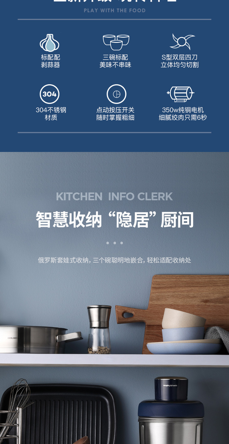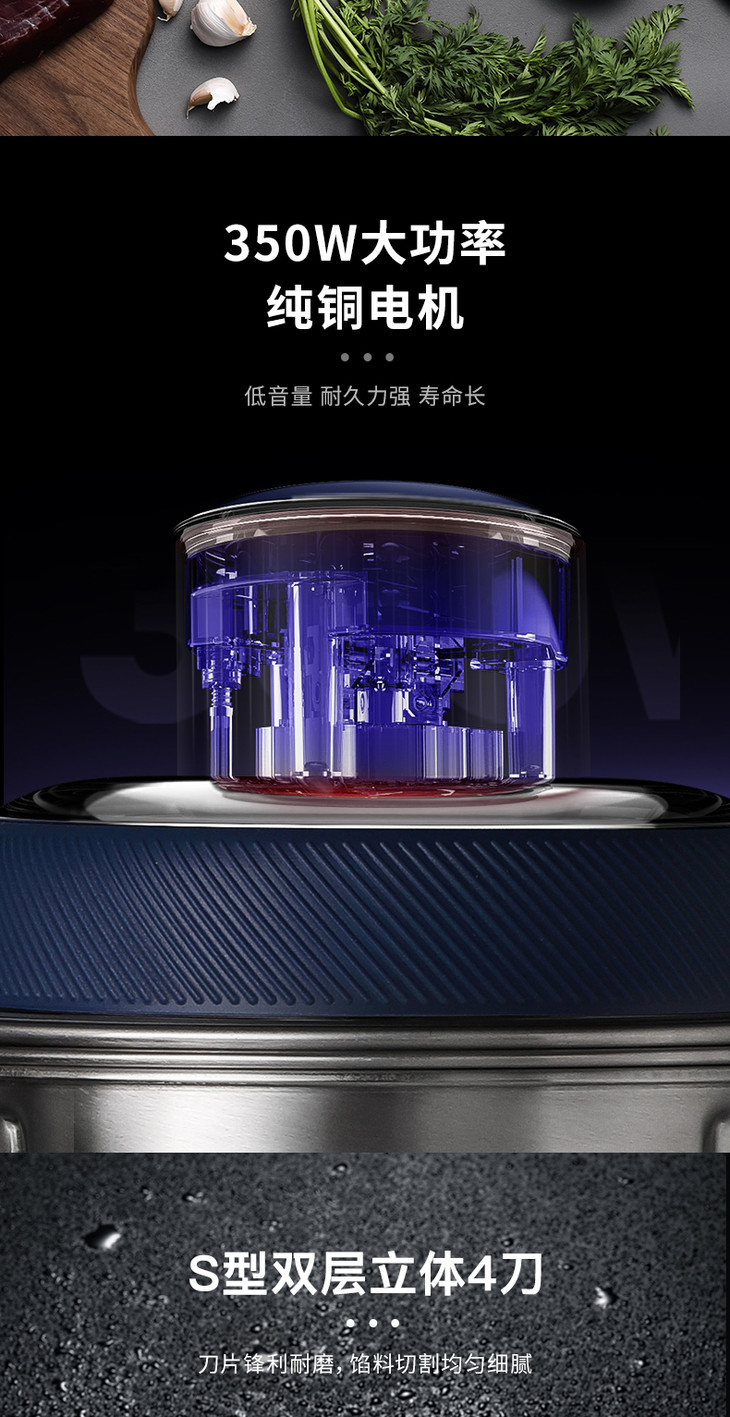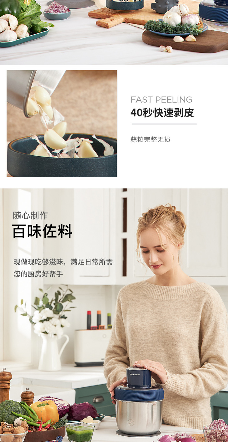 2.搭配搅拌刀头与剥蒜刀头,功能更实用
