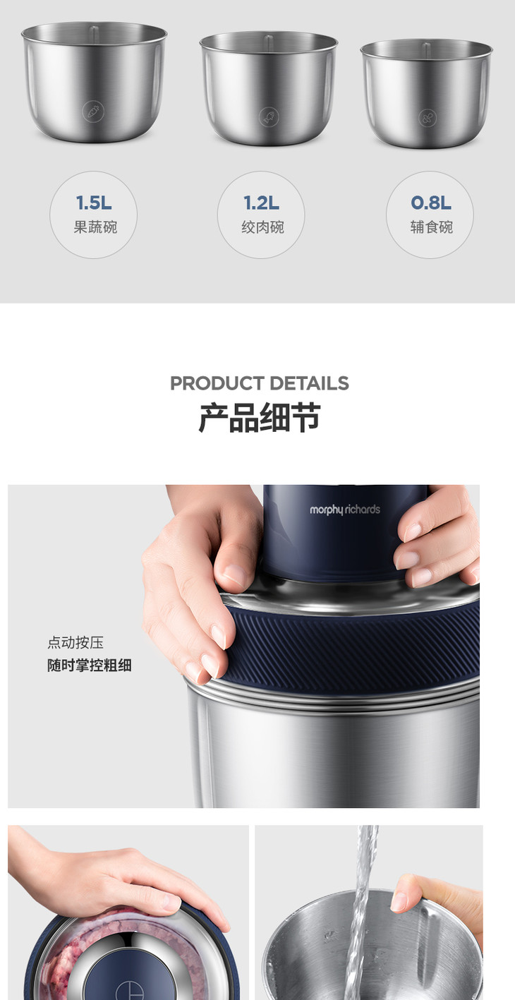 【已下架】Morphy Richards/摩飞 绞肉机新款家用电动小型多功能料理机不锈钢搅拌机MR9401[福利品]