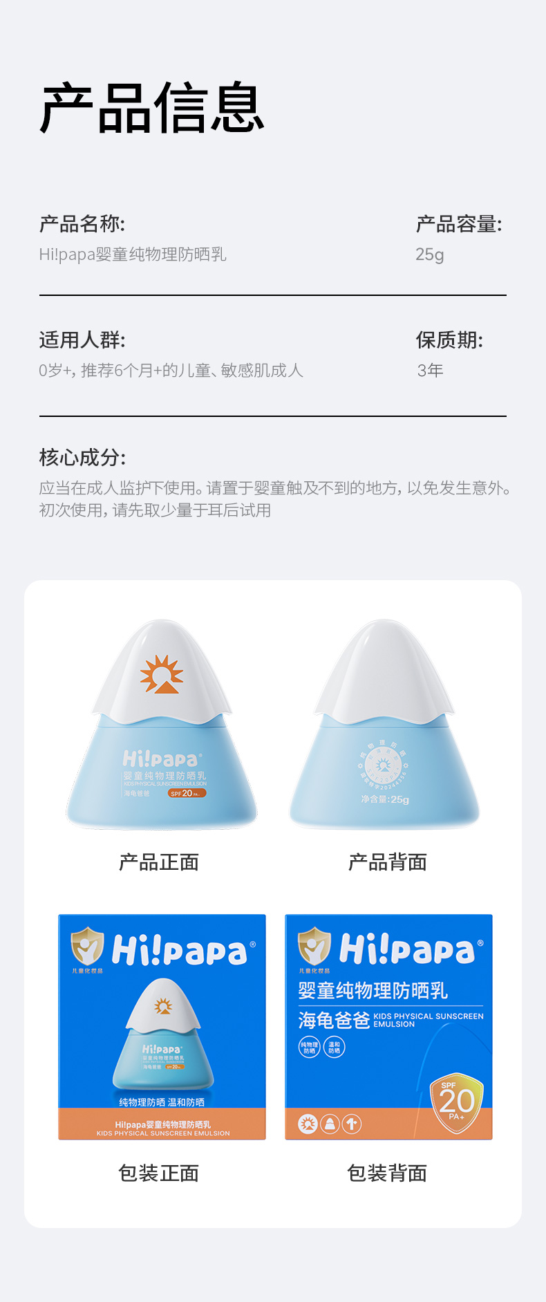 Hi!papa婴童纯物理防晒乳(小雪山25年版)