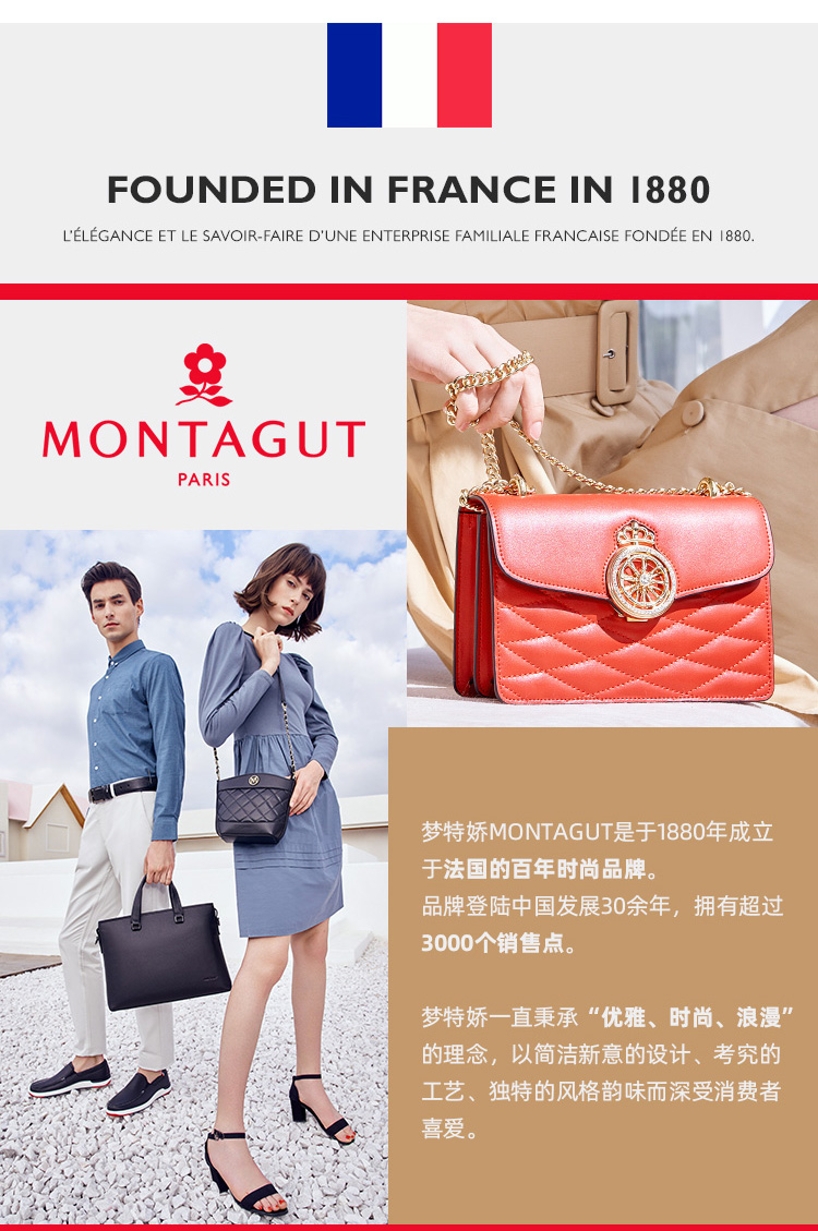 法国梦特娇羊皮时尚菱格单肩通勤斜挎包
