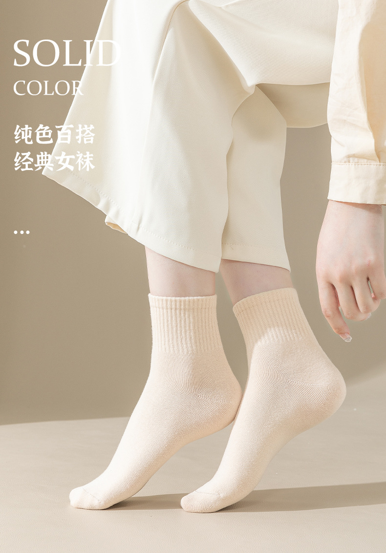 「10双装!数款组合」袜子女秋冬季棉无骨中筒袜 纯色月子袜吸汗袜子配饰