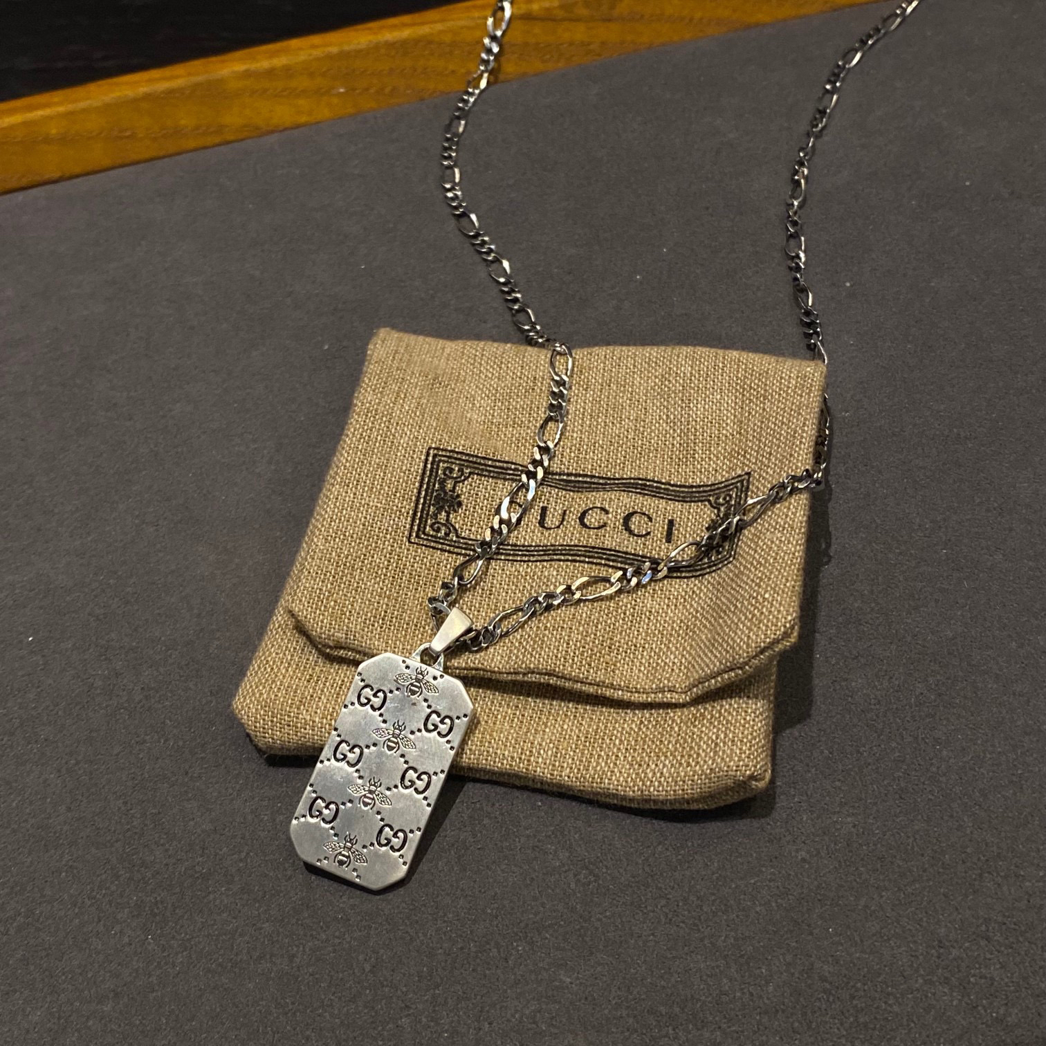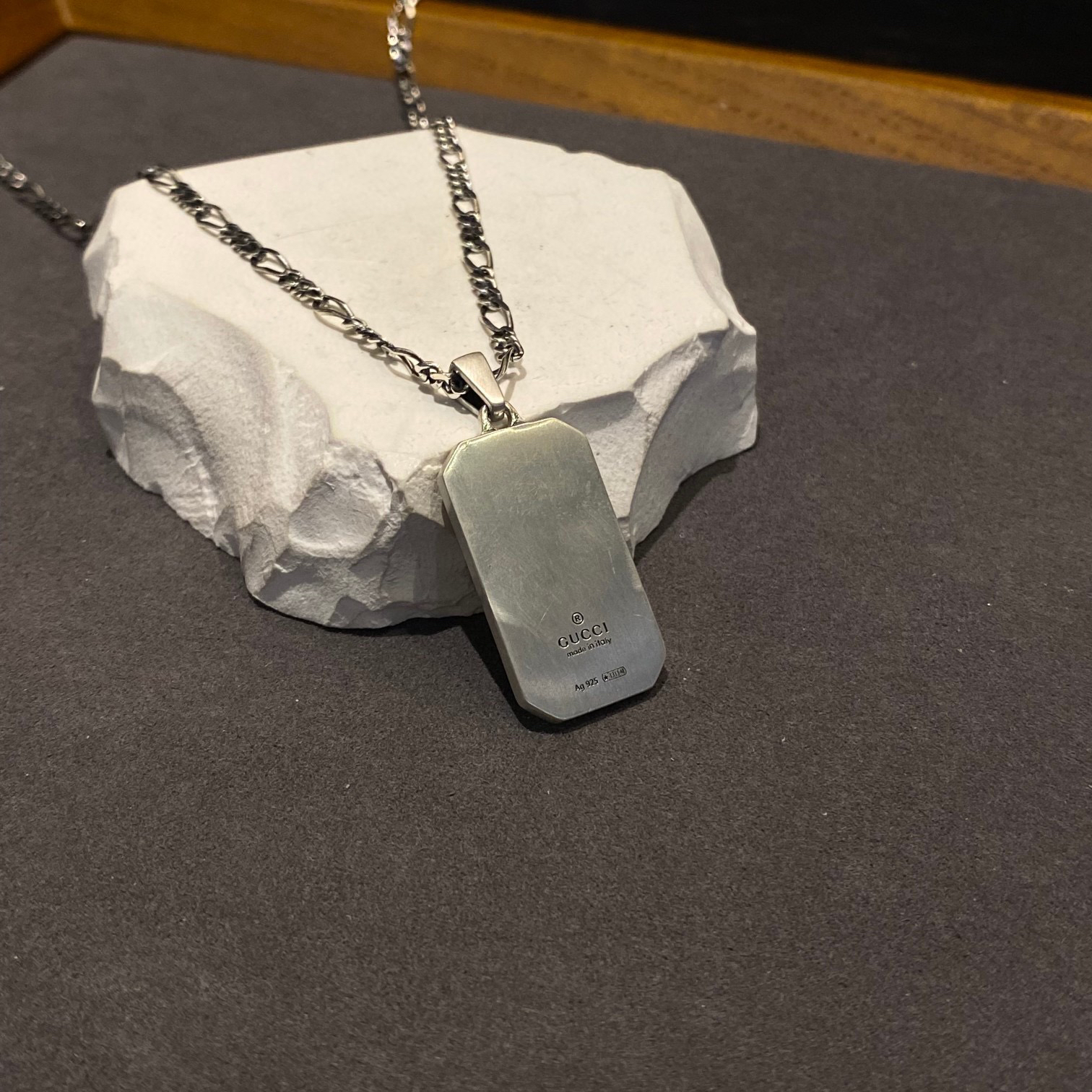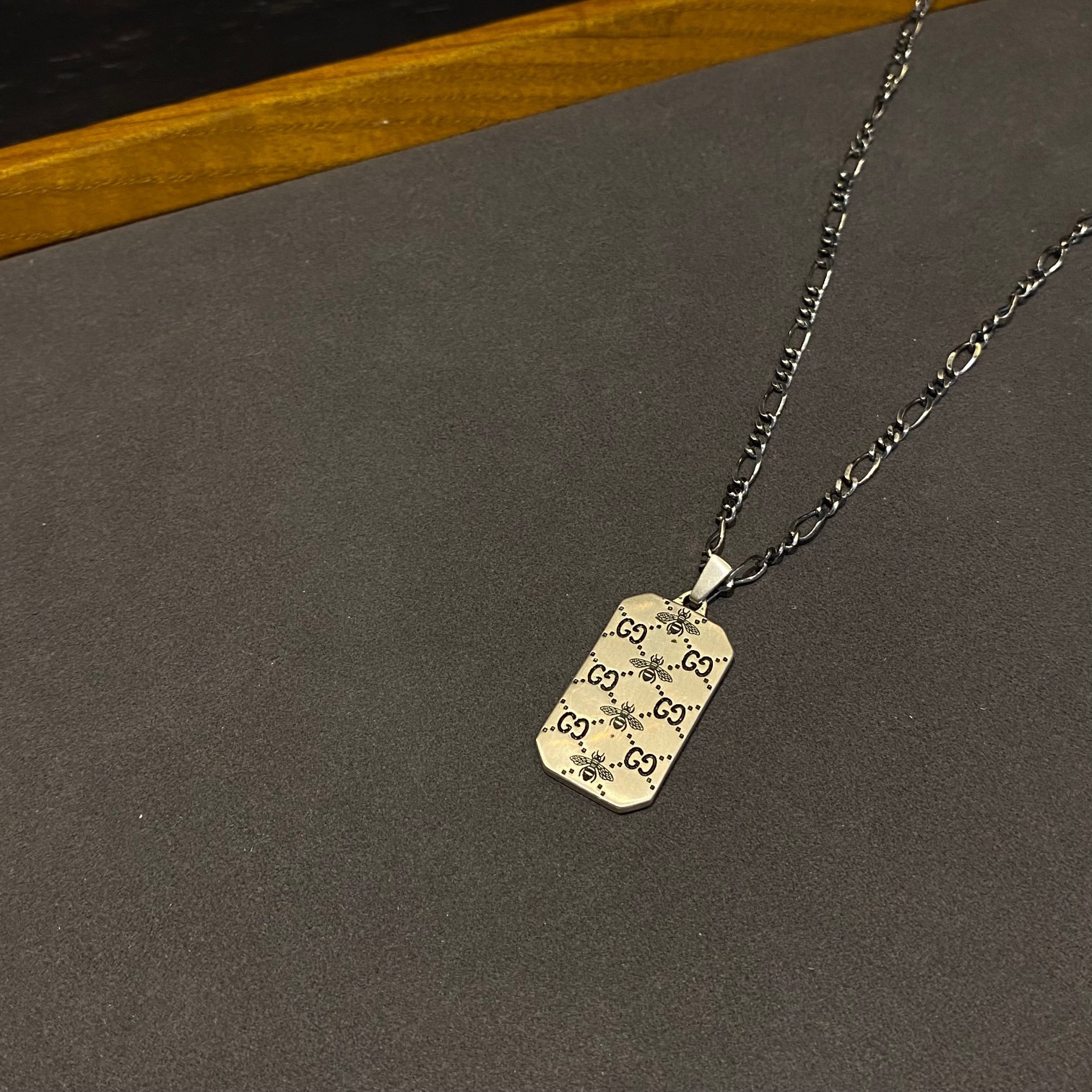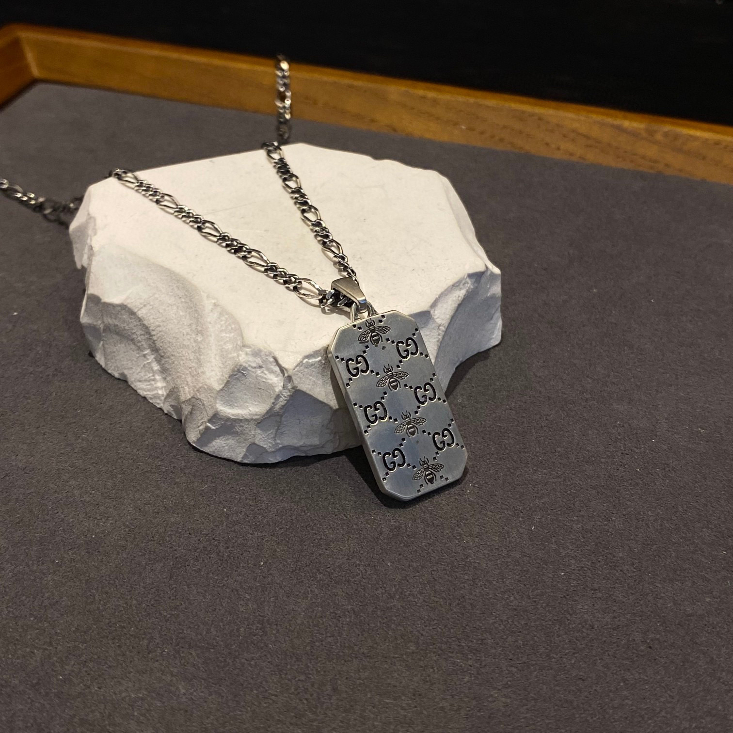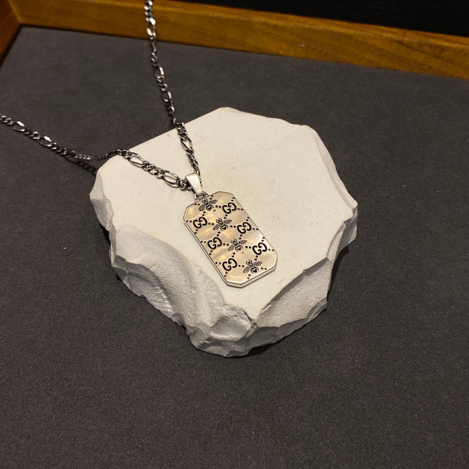 纯银材质 复古做旧 方形切割吊坠 蜜蜂图案 经典双G 刻花元素 时尚造型 奢侈性感 新品上架