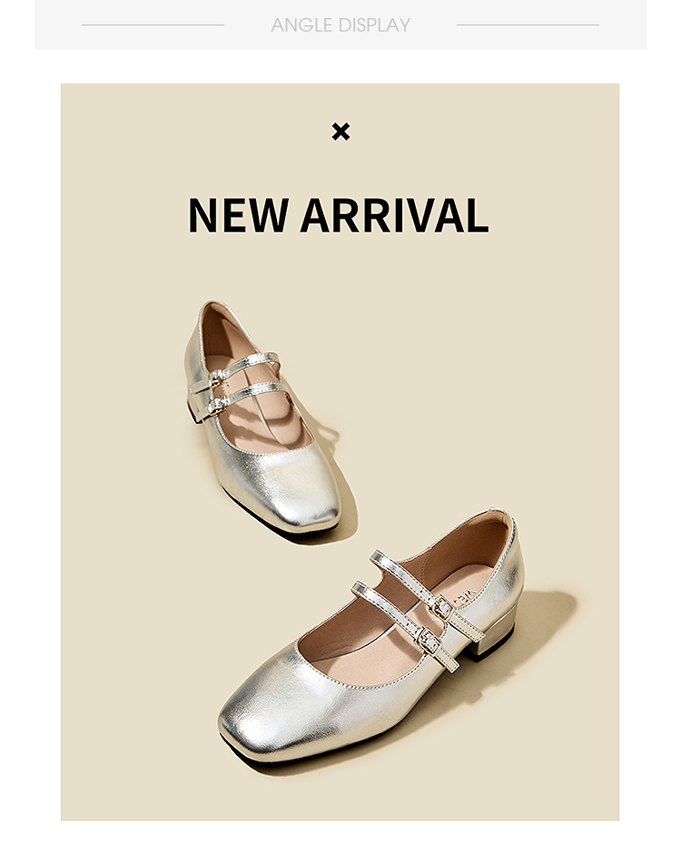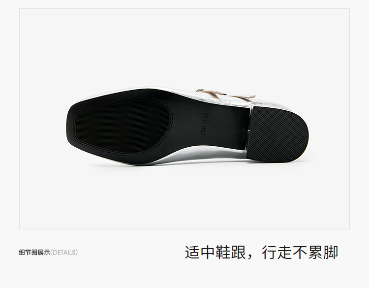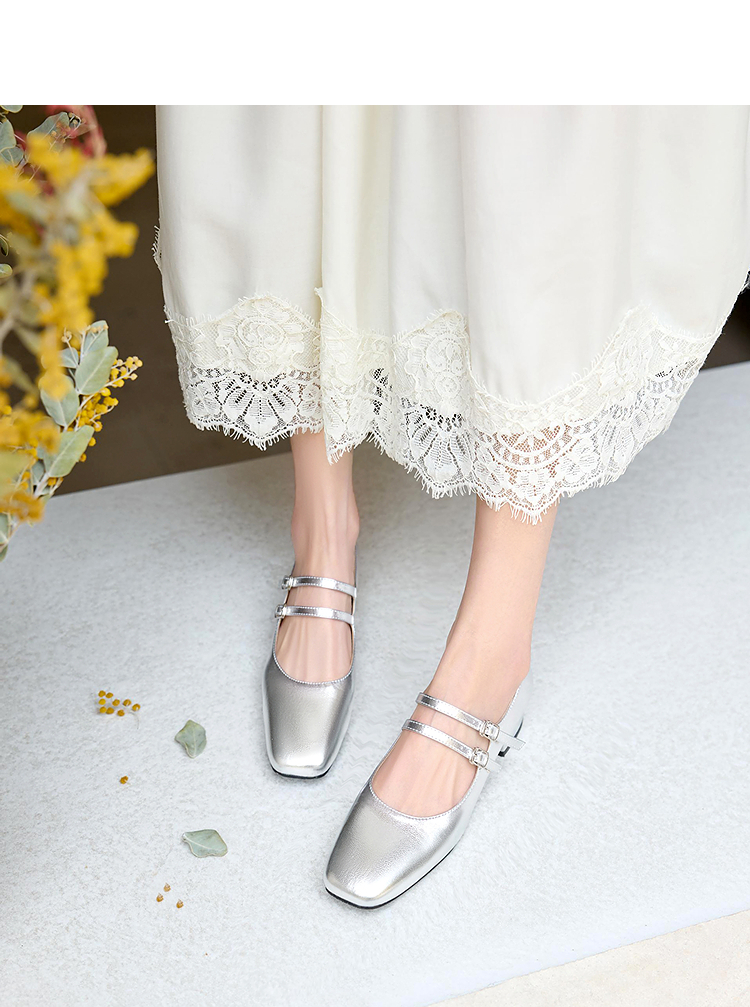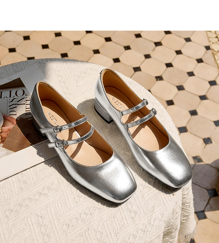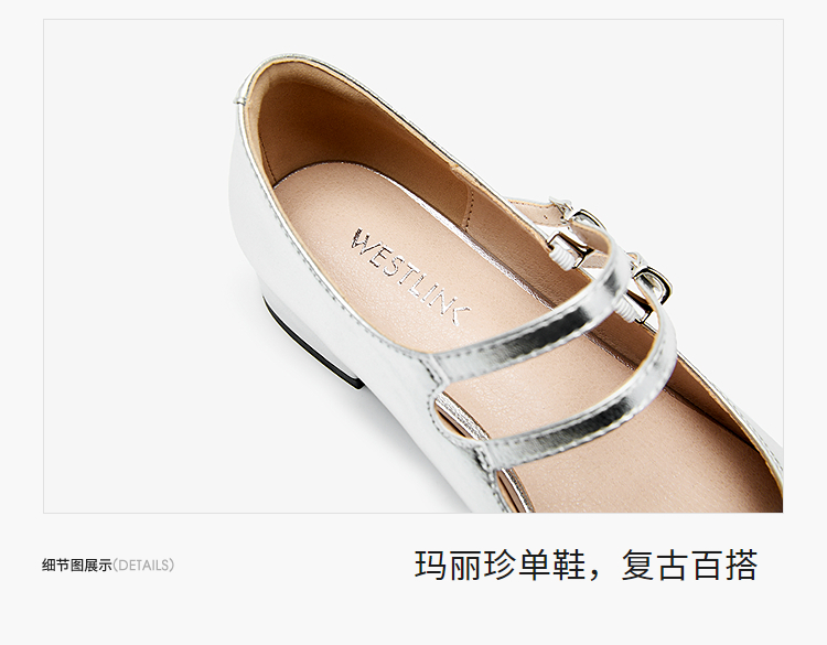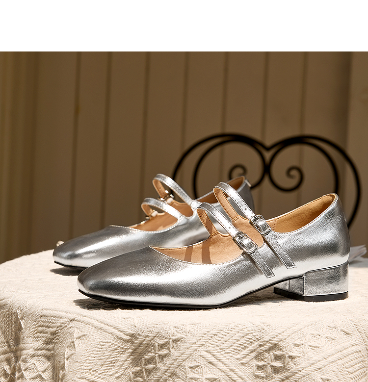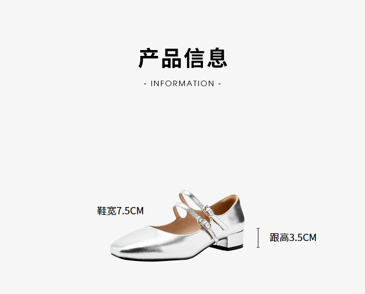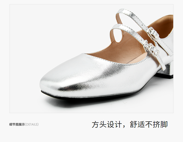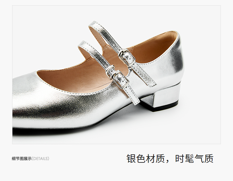 西遇粗跟玛丽珍鞋女新款夏季爆款法式绝美不累脚中跟银色单鞋D0056711