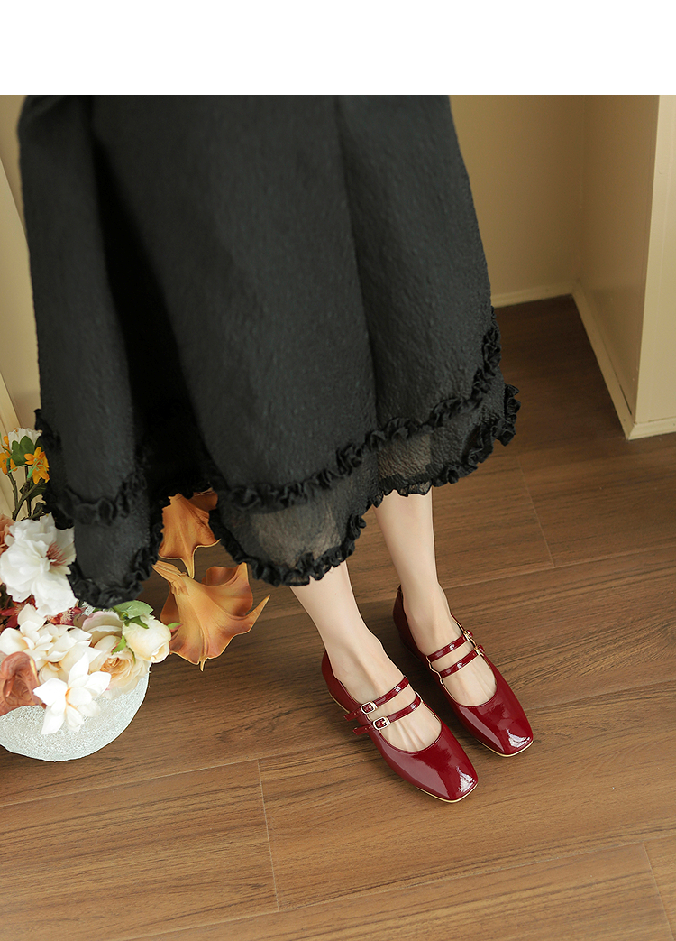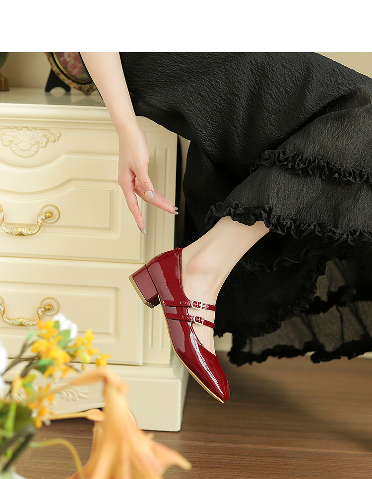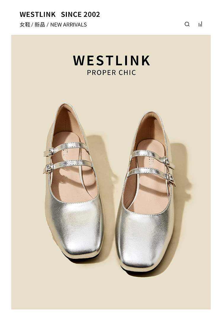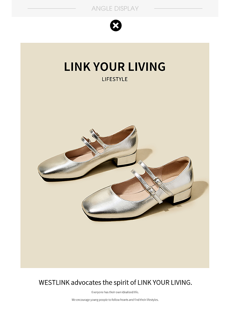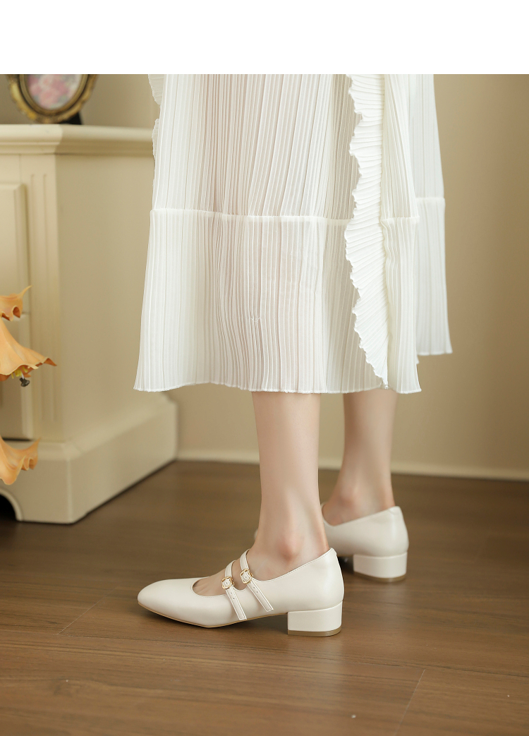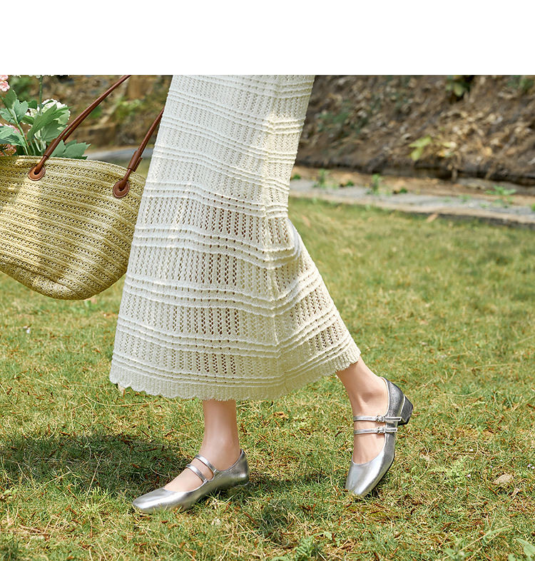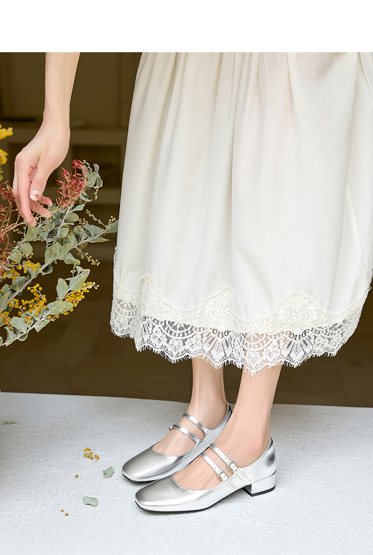 西遇粗跟玛丽珍鞋女新款夏季爆款法式绝美不累脚中跟银色单鞋D0056711