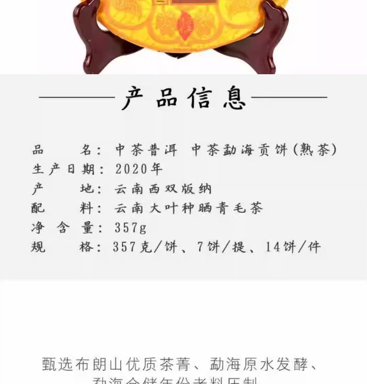 中粮-中茶 2020年勐海贡饼普洱茶熟茶357克 /云南干仓直发