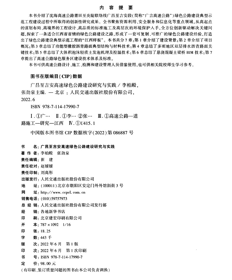 书名:广昌至吉安高速绿色公路建设研究与实践