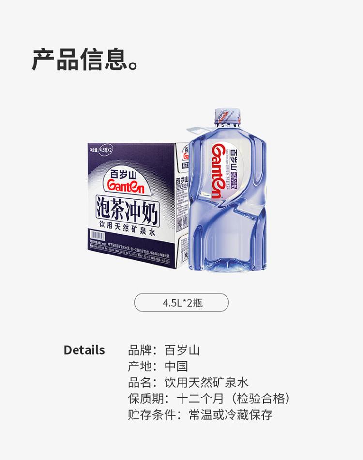 百岁山 饮用天然矿泉水4.5L*2瓶