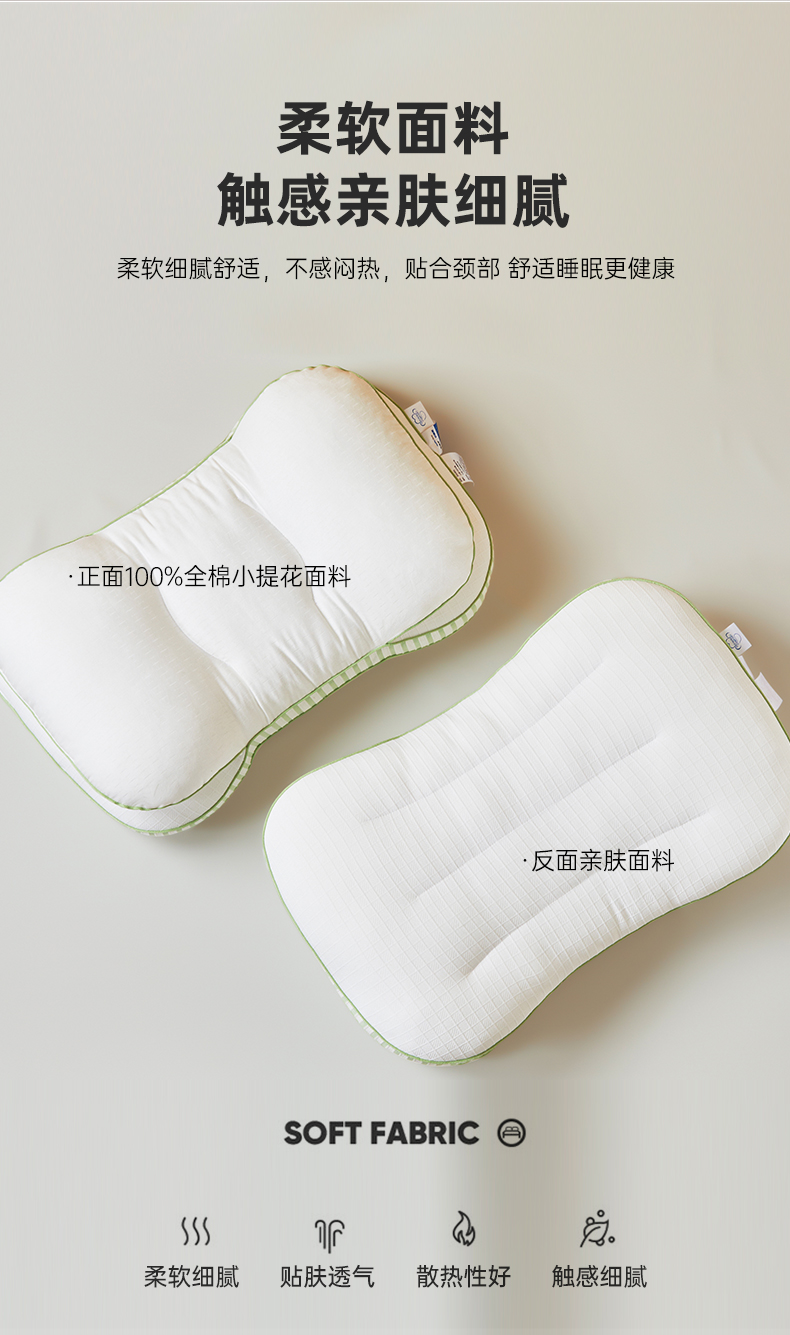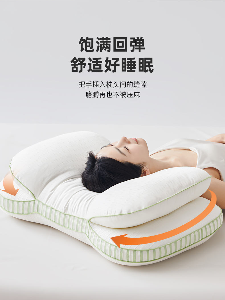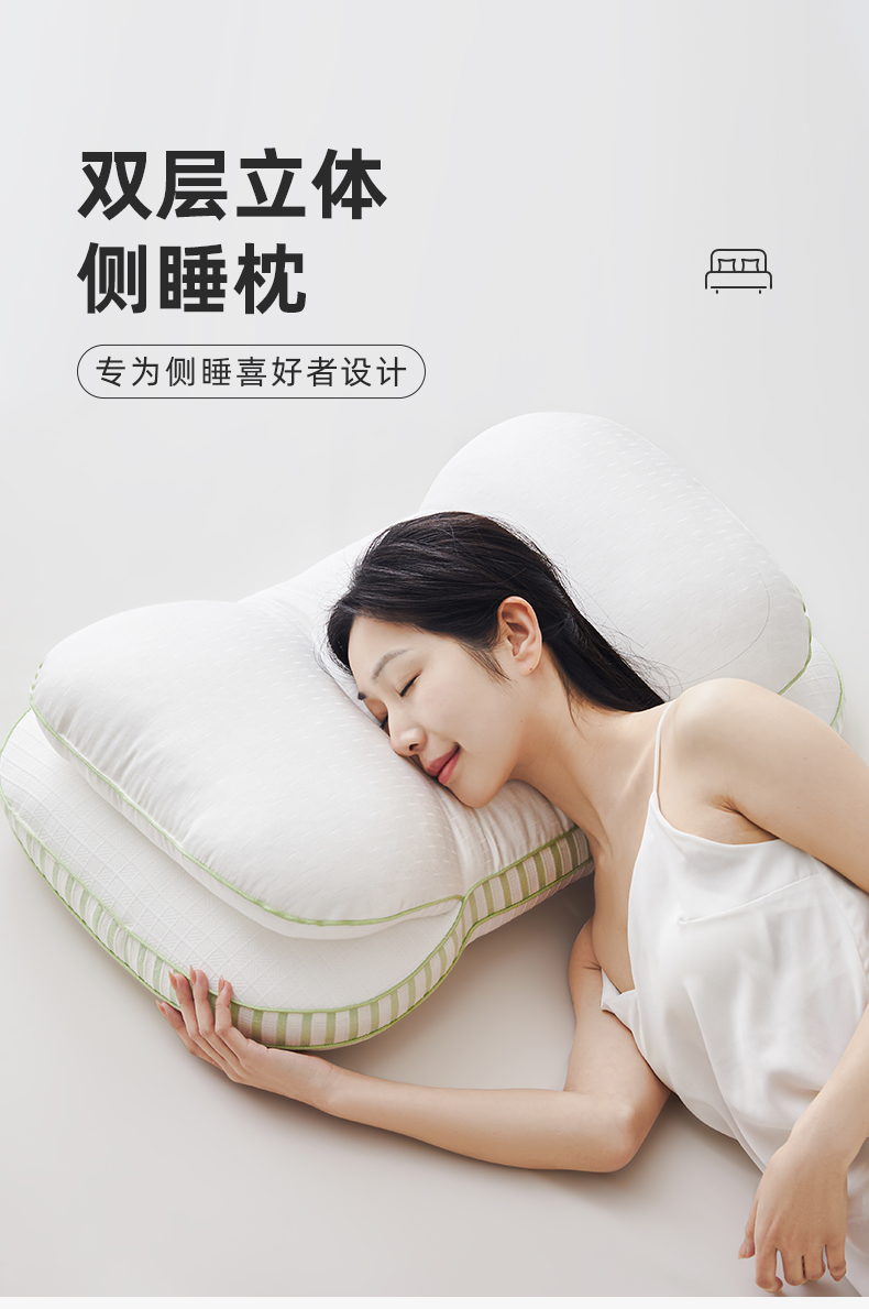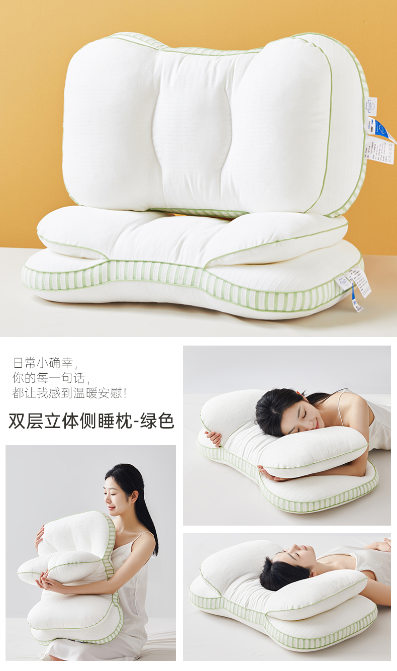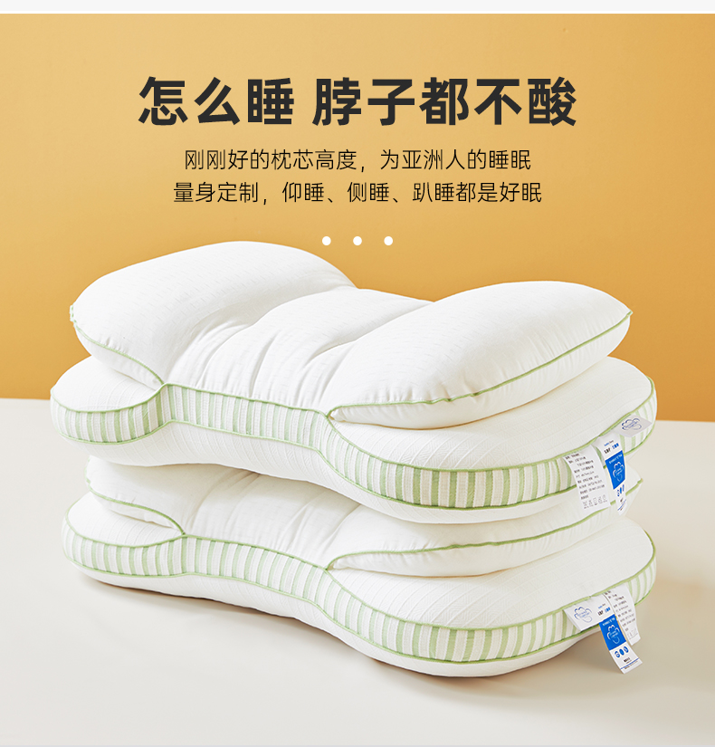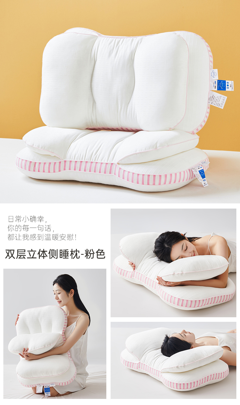 自然醒全棉双层提花侧睡护颈枕助睡眠专用枕芯家用高枕不塌陷成人颈椎枕学生XK