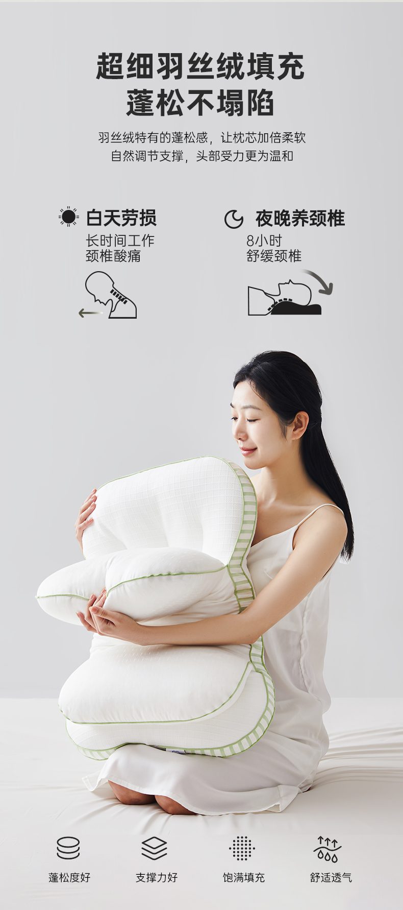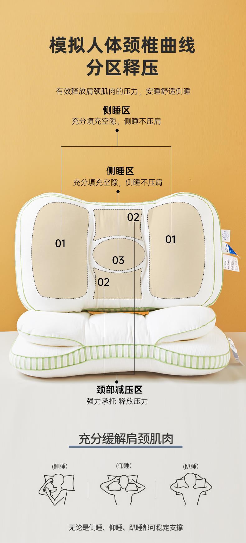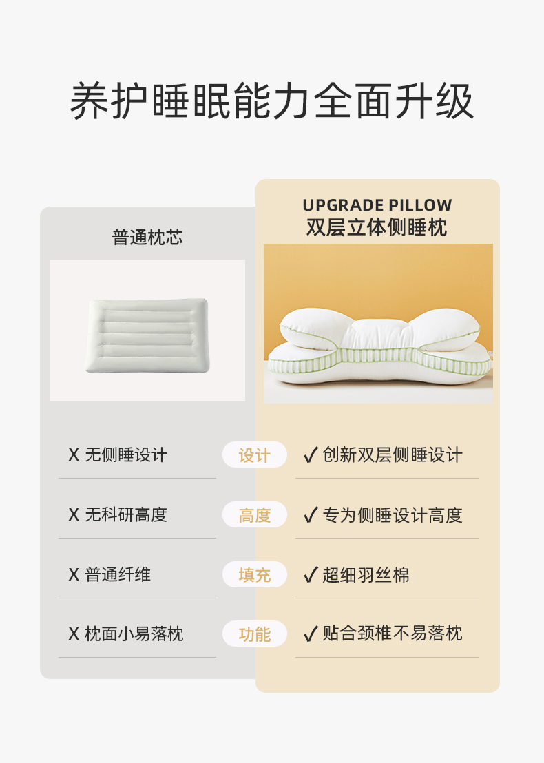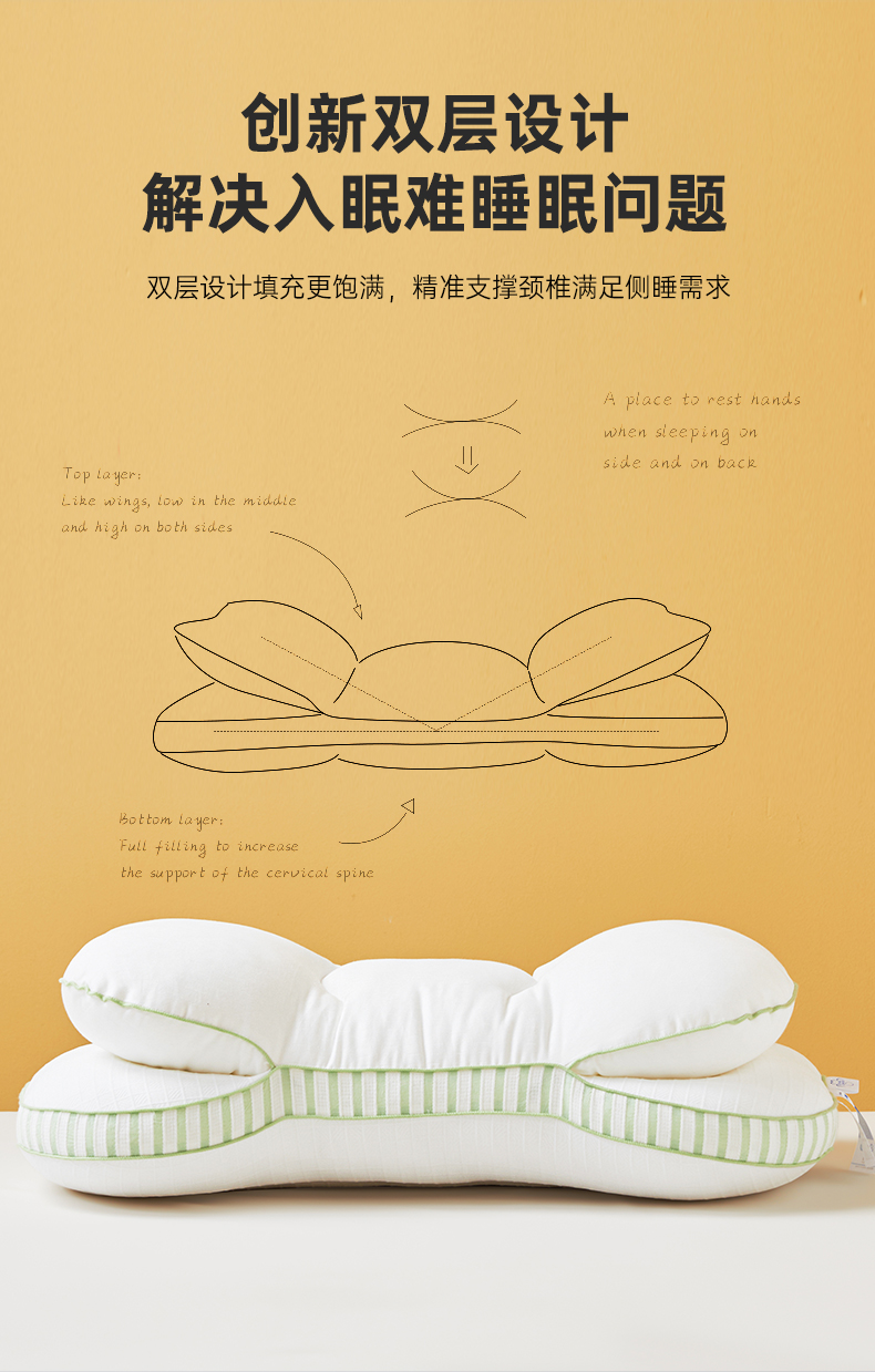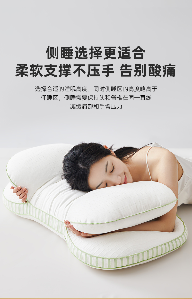 自然醒全棉双层提花侧睡护颈枕助睡眠专用枕芯家用高枕不塌陷成人颈椎枕学生XK