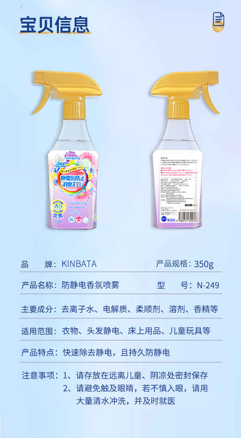 kinbata 防静电香氛喷雾350g