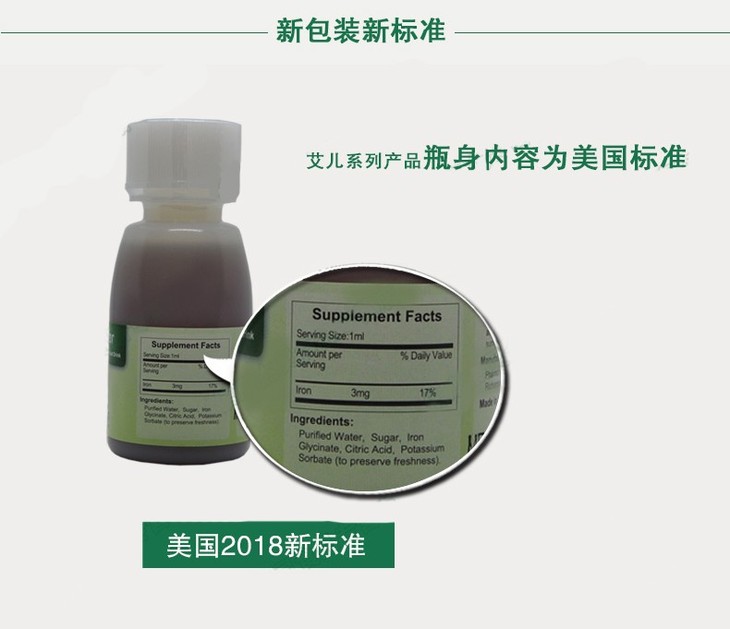 Ayer艾儿进口甘氨酸亚铁 液体铁 50ml