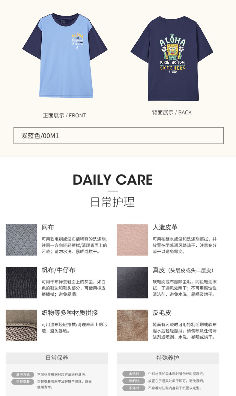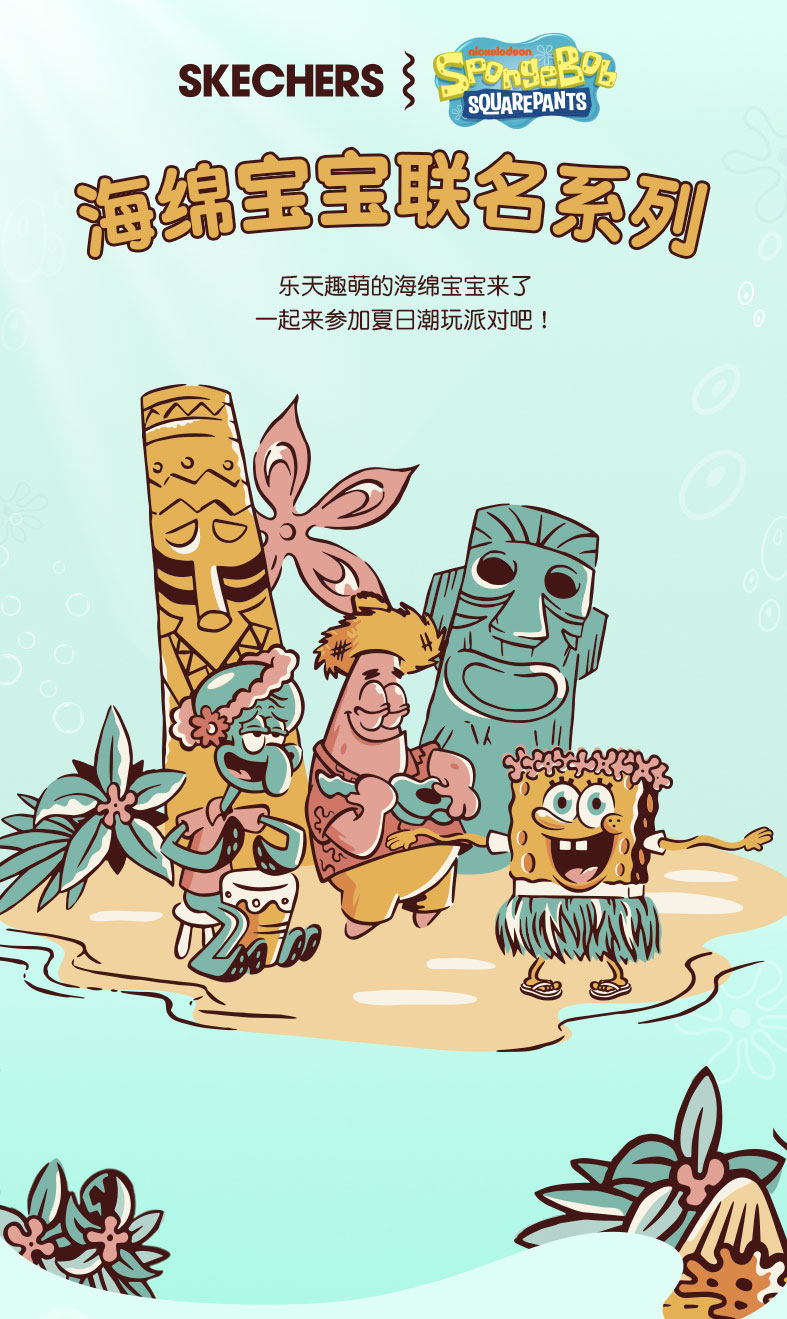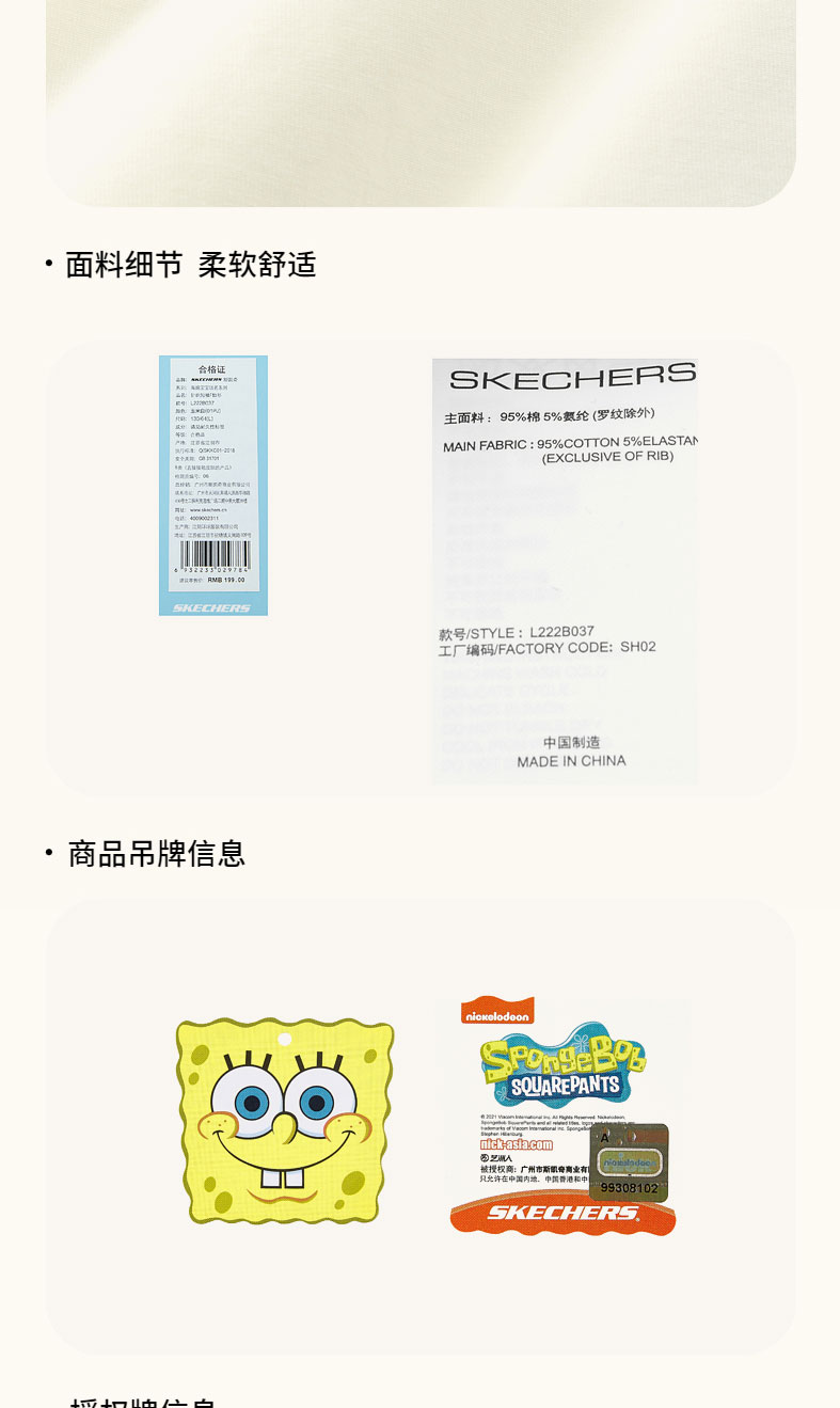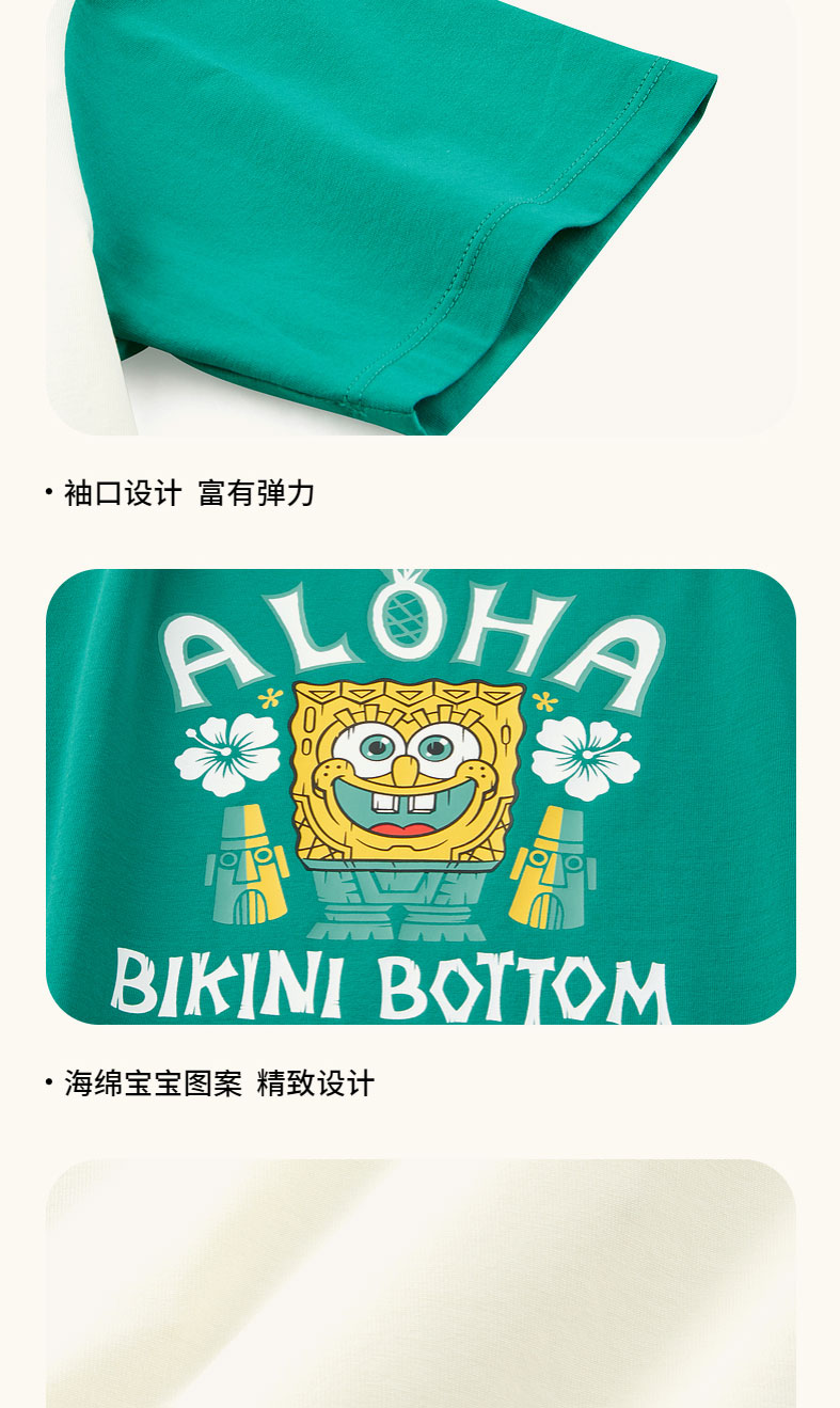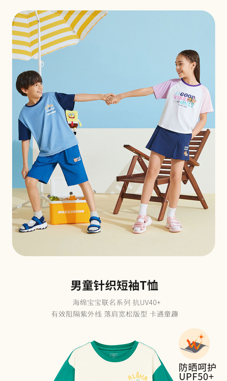 小斯凯奇【海绵宝宝联名】男大童短袖夏季新款插肩袖儿童宽松T恤L222B037