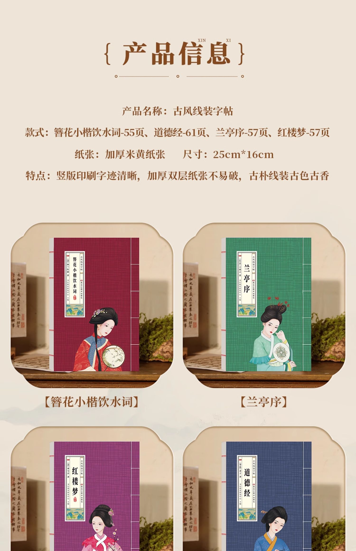 【书行】簪花小楷字帖女生字体漂亮大气初中生高中生大学生成人楷书钢笔练字帖兰亭序饮水词古风线装静心硬笔书法纸初学者描红本