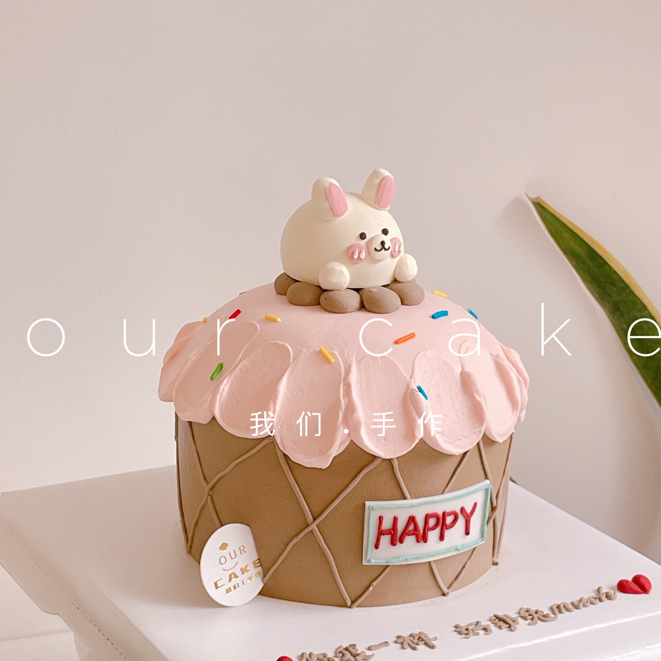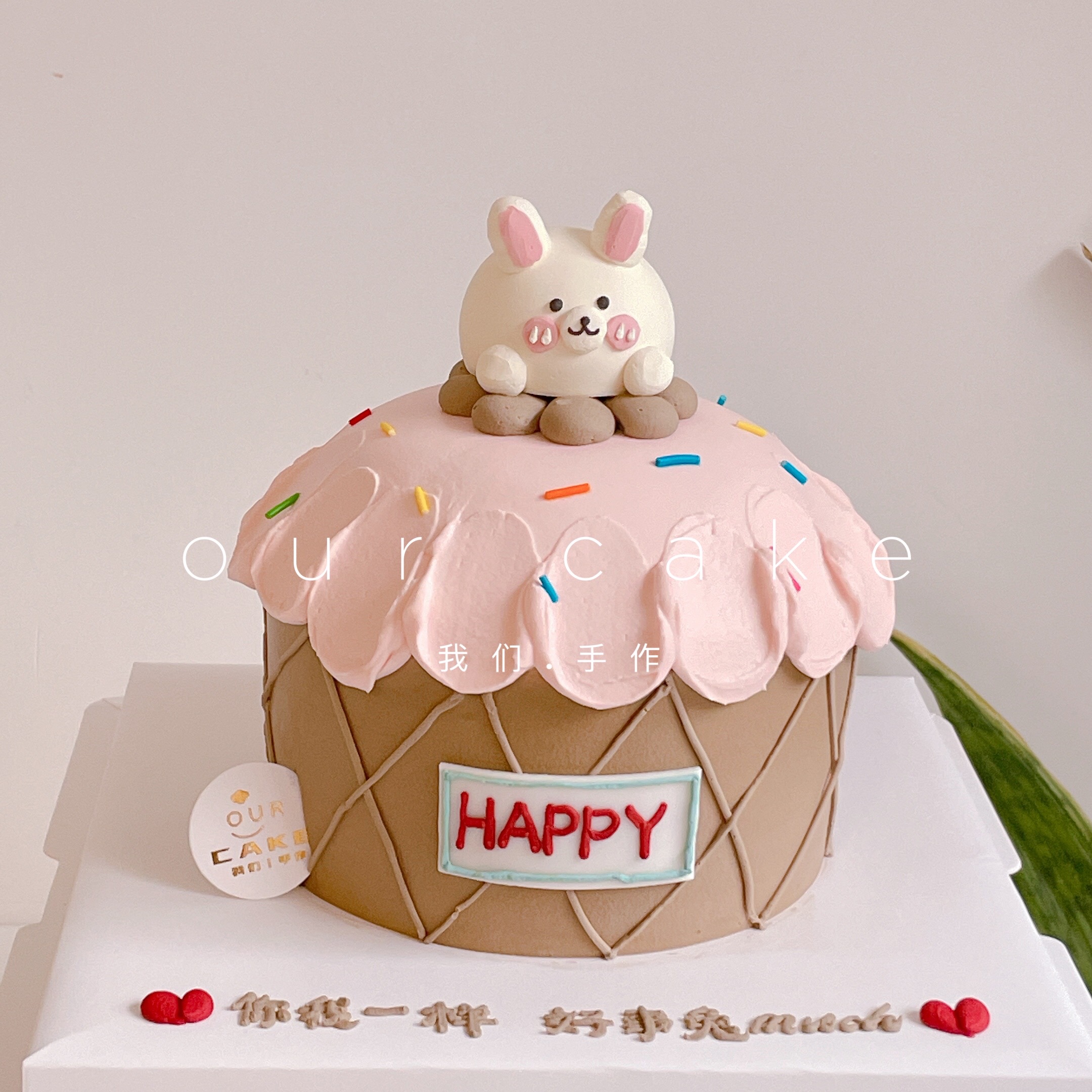 甜筒立体小兔子蛋糕-低糖处理无添加