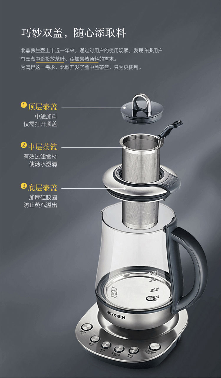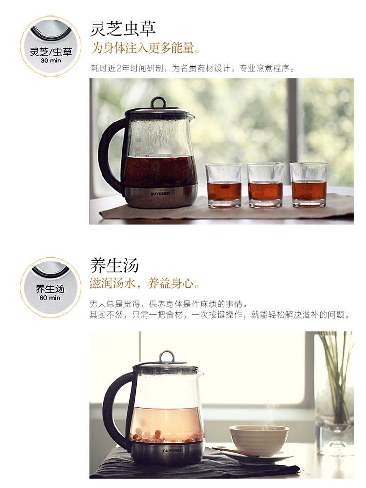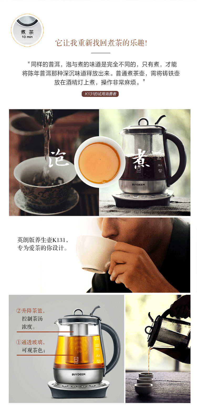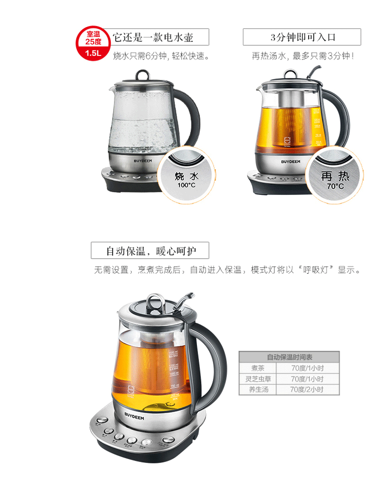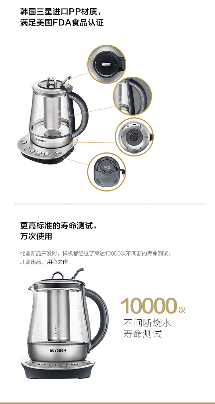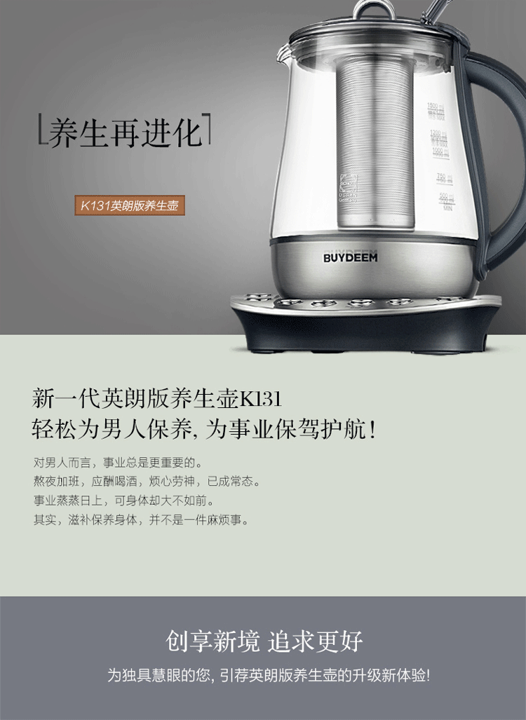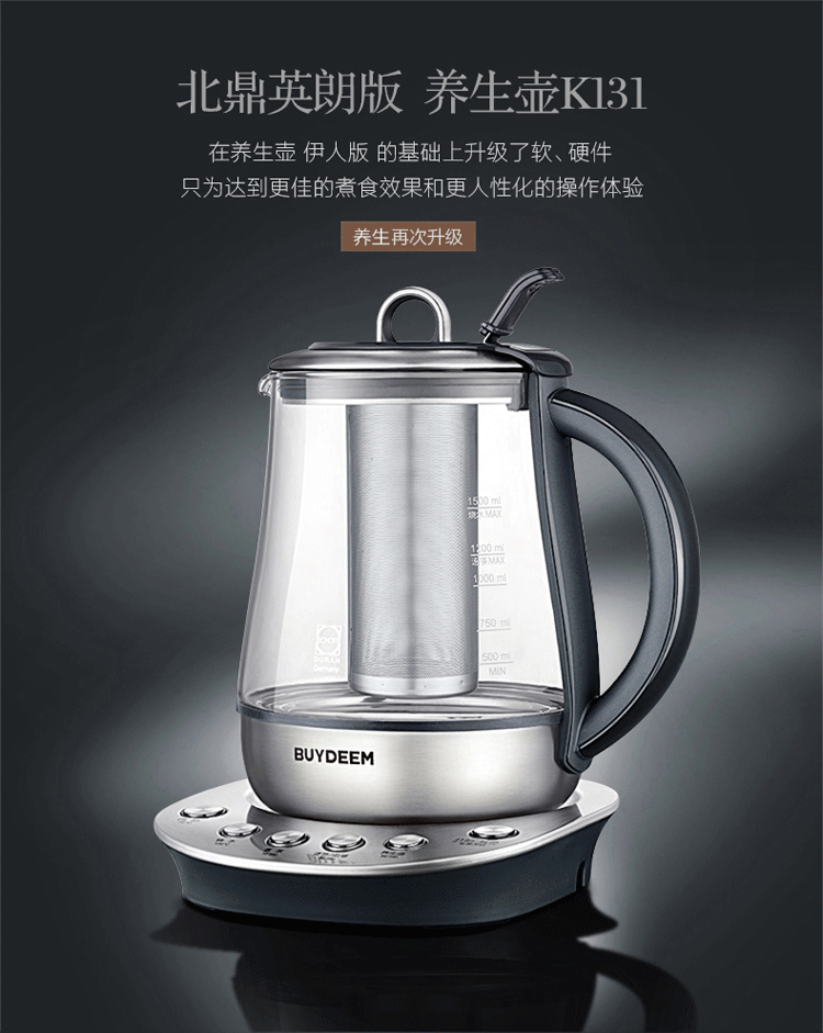 北鼎(Buydeem)家用养生壶K131全自动多功能加厚玻璃煮灵芝虫草煮茶壶进口不锈钢