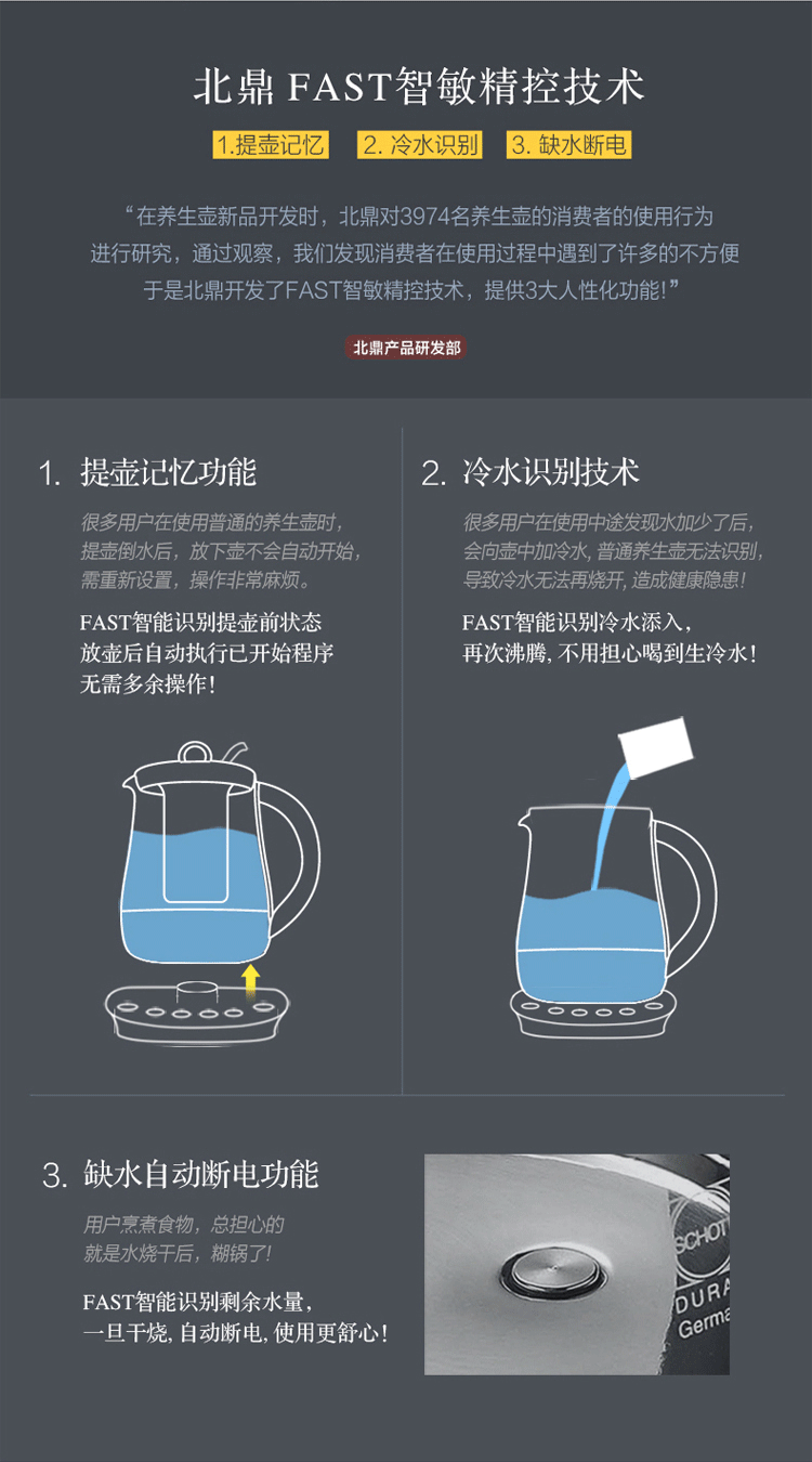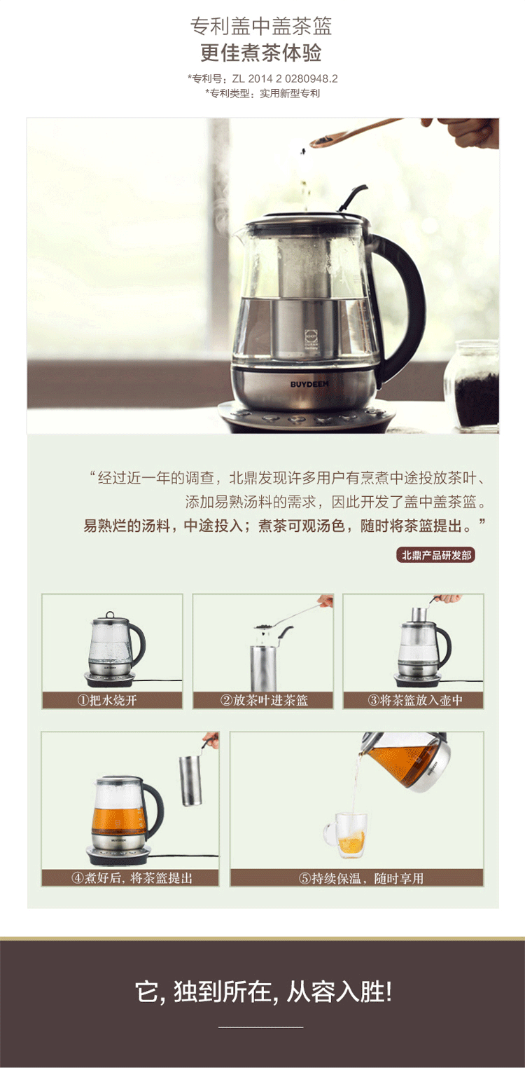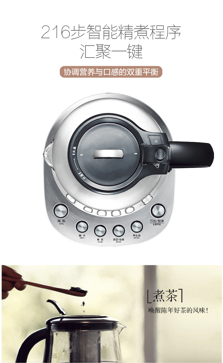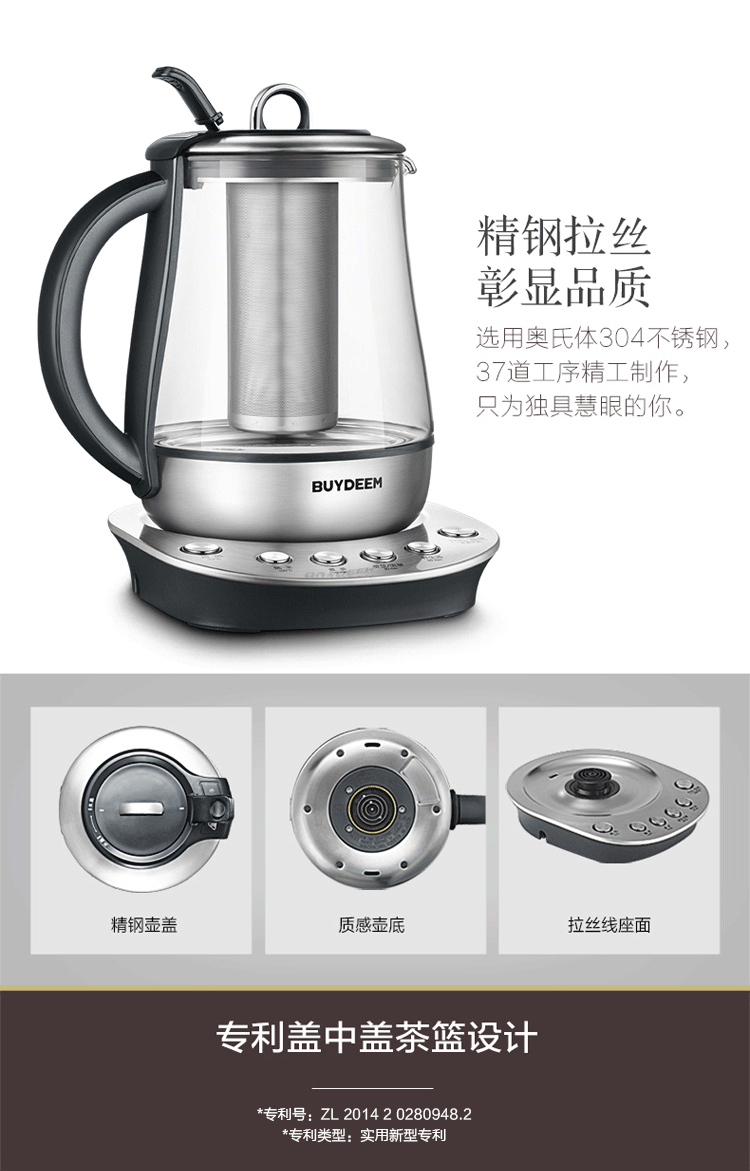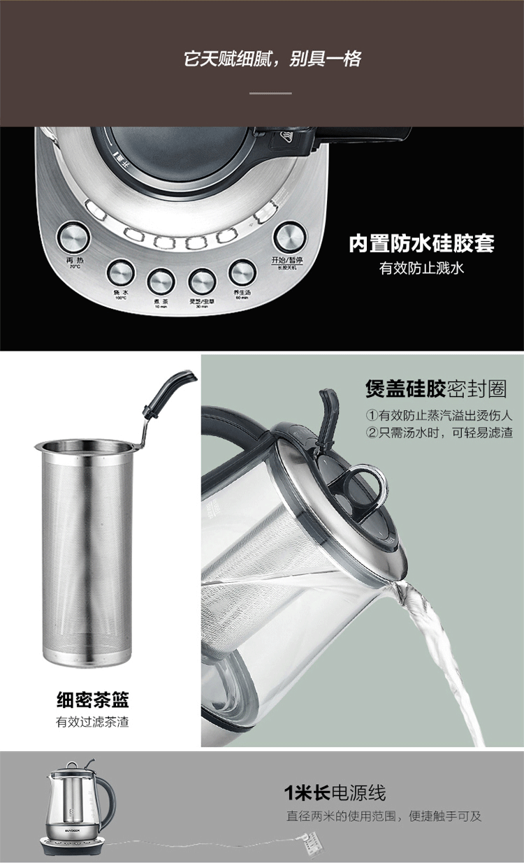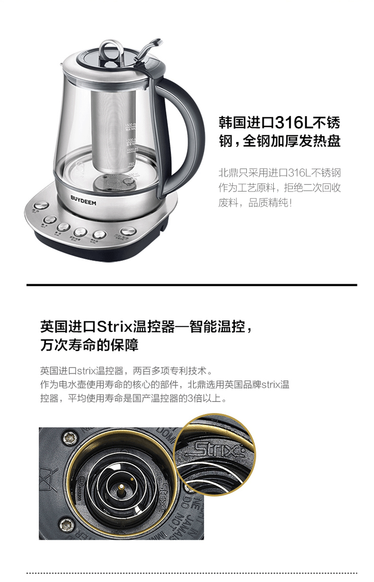 北鼎(Buydeem)家用养生壶K131全自动多功能加厚玻璃煮灵芝虫草煮茶壶进口不锈钢