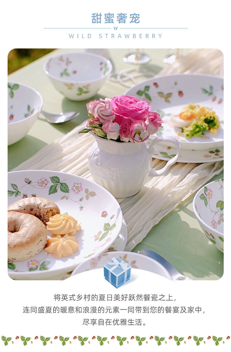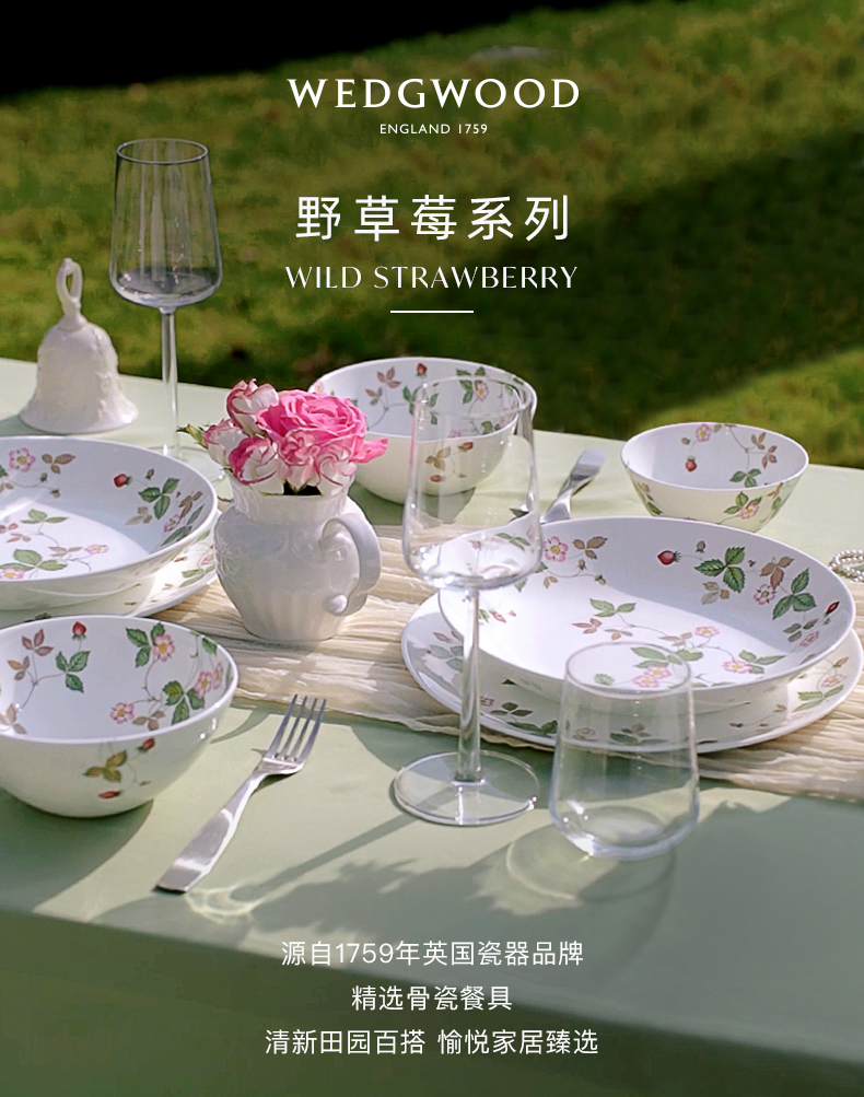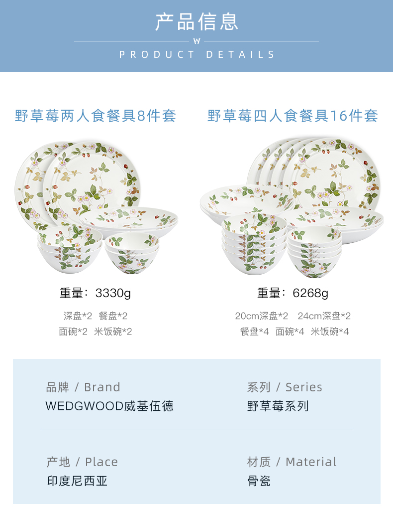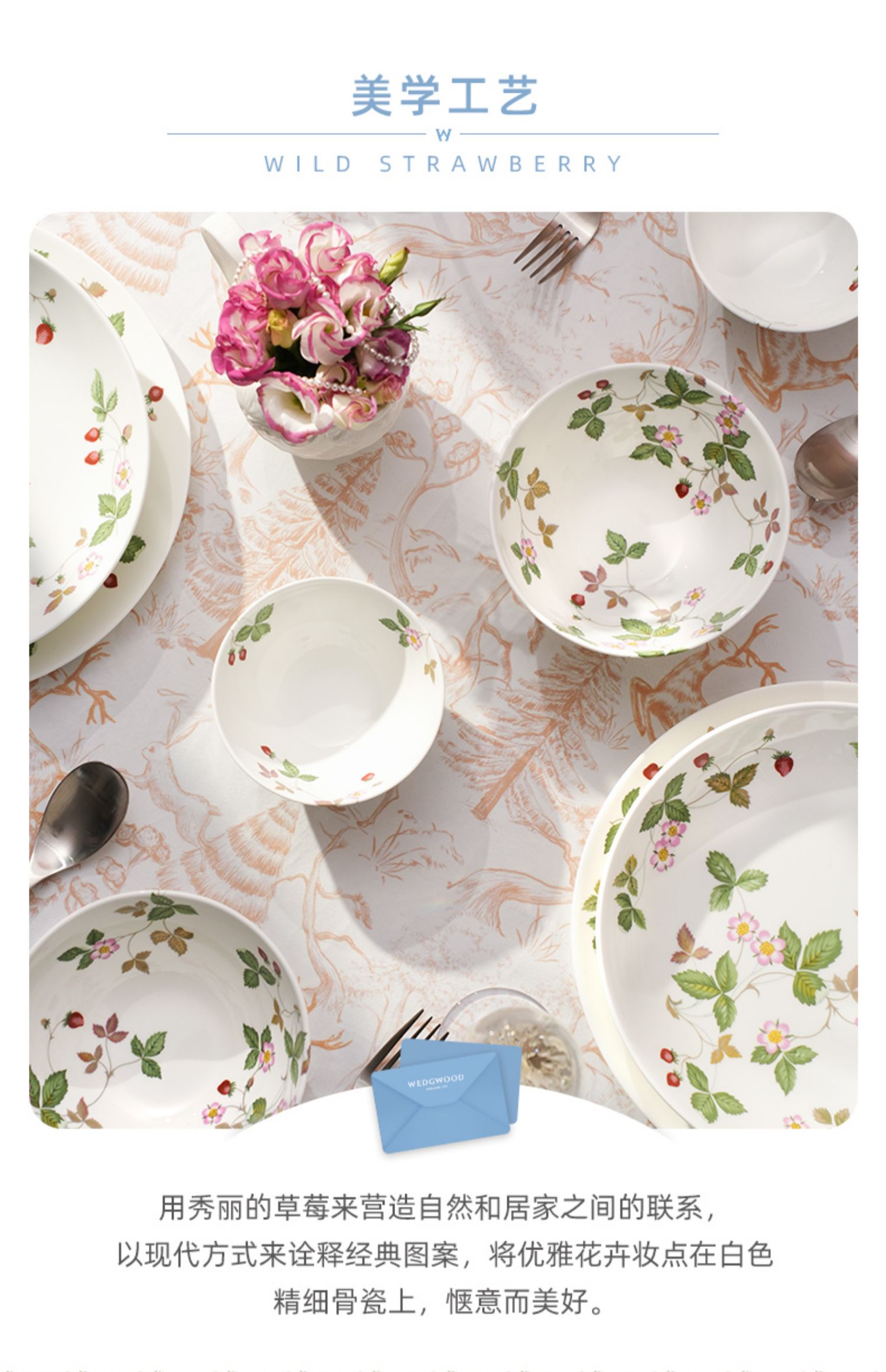 WEDGWOOD威基伍德野草莓两人食8件骨瓷轻奢餐具碗碟套装高档送礼