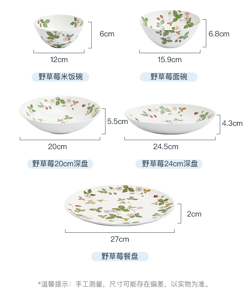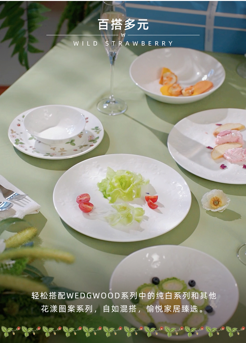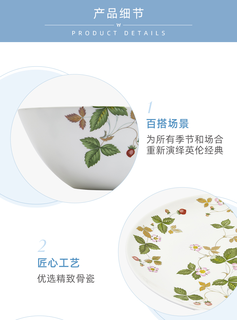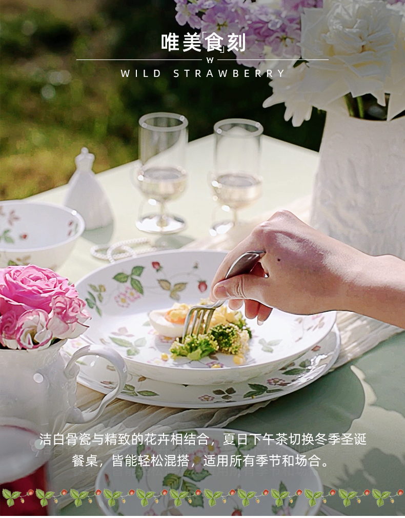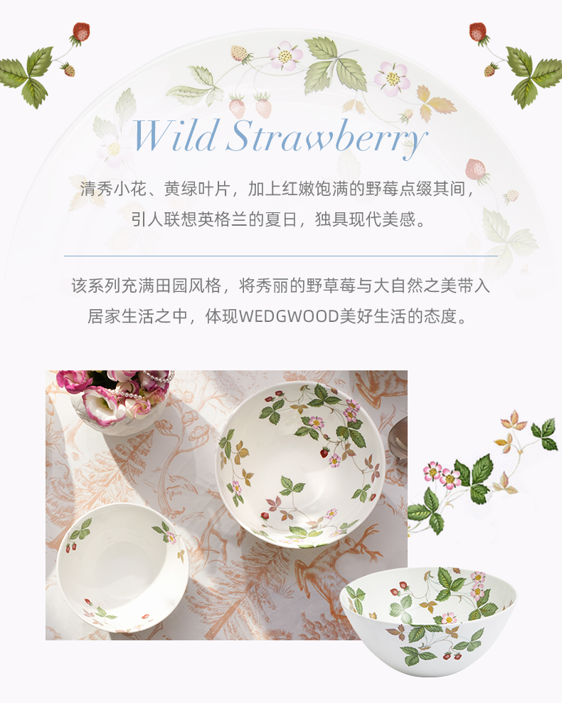 WEDGWOOD威基伍德野草莓两人食8件骨瓷轻奢餐具碗碟套装高档送礼