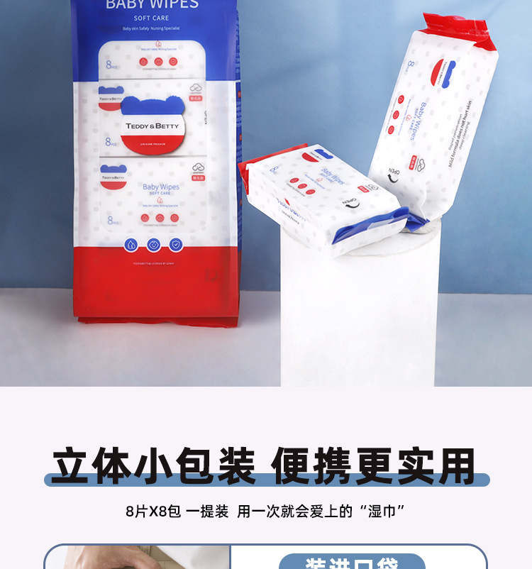 「34.9到手三组!一组8包」洁克琳迷你便携湿巾8包装 居家日用加厚一次性旅行温和清洁手口湿巾