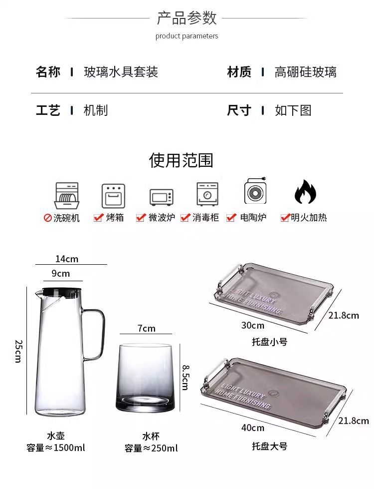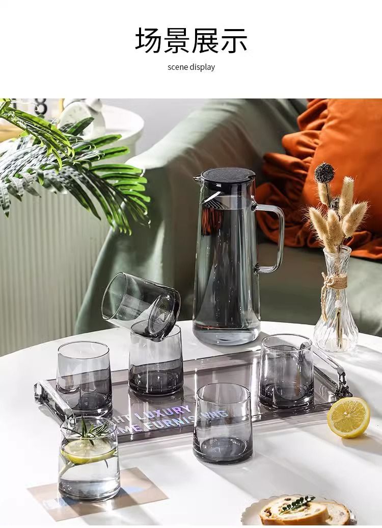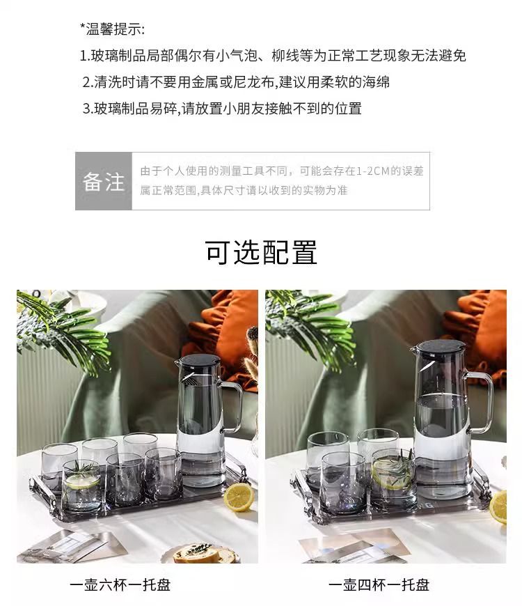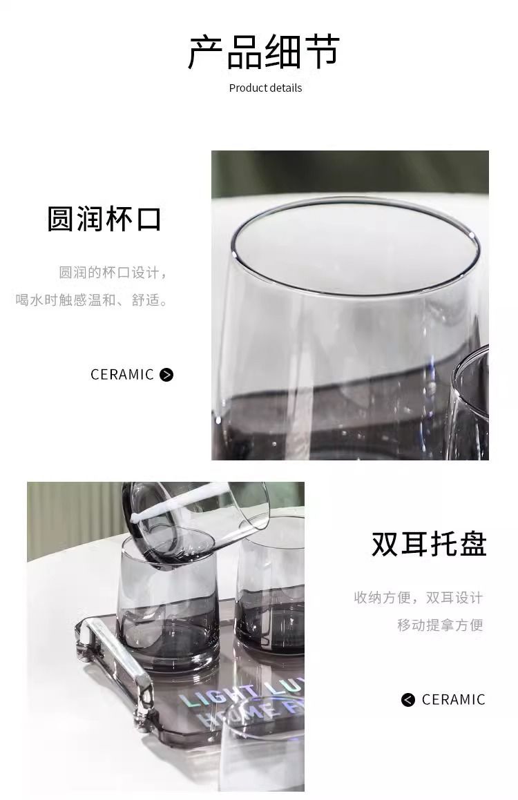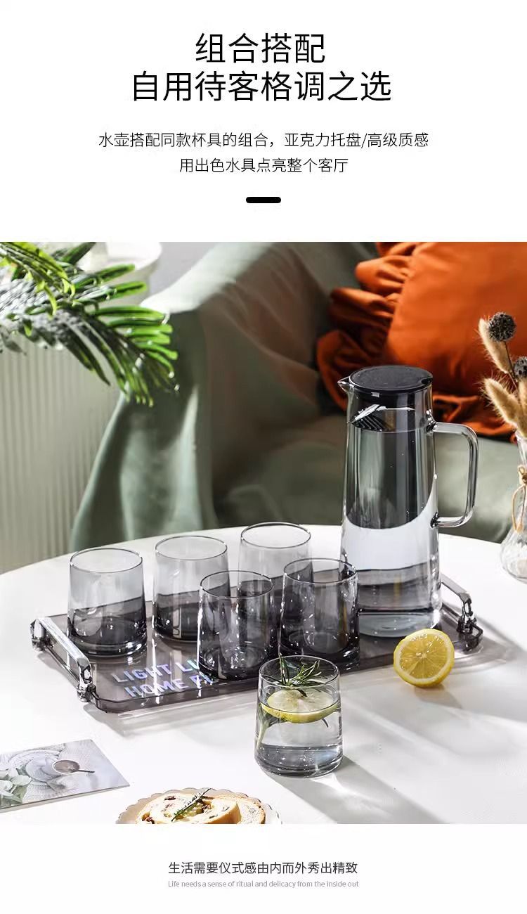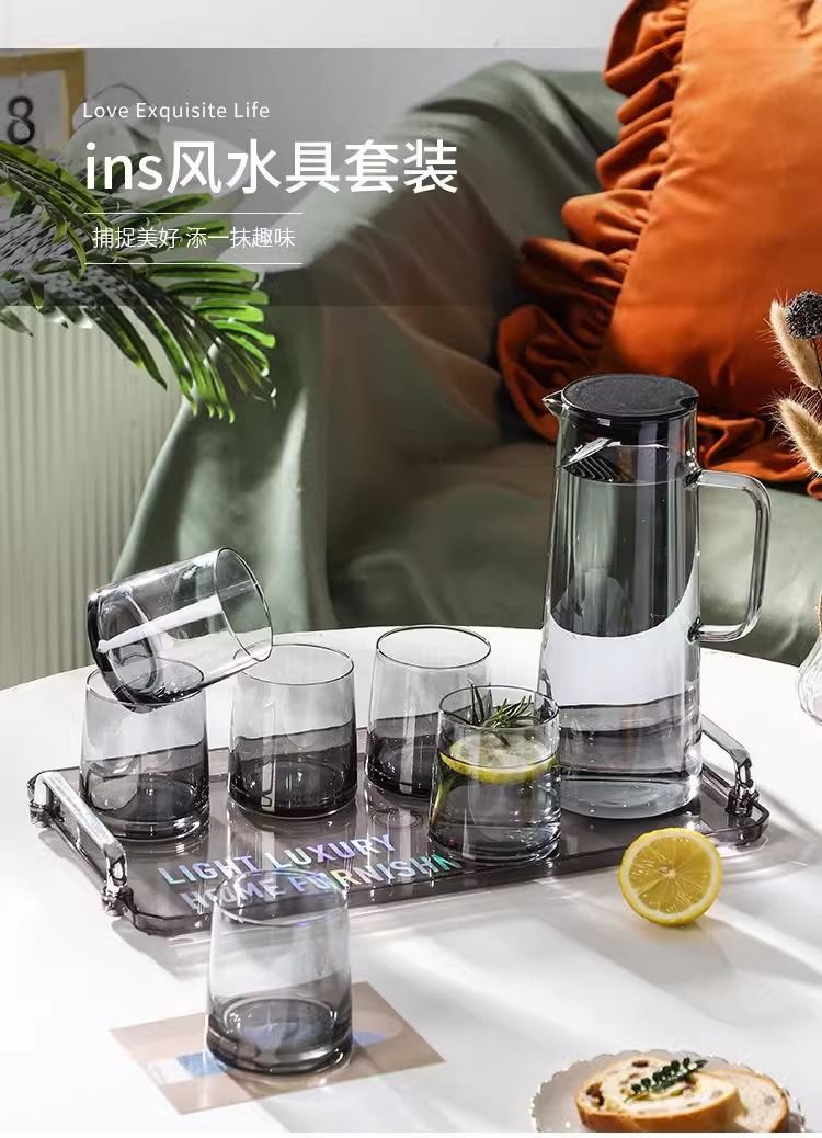 「轻奢质感!ins风水具套装」居家日用冷水壶套装客厅杯子托盘ins风家庭待客餐饮用具套装