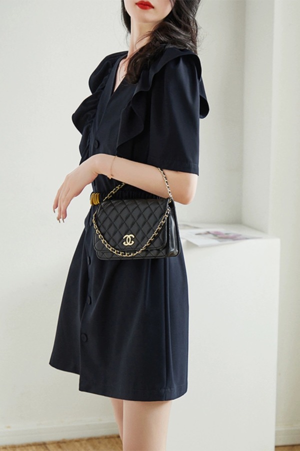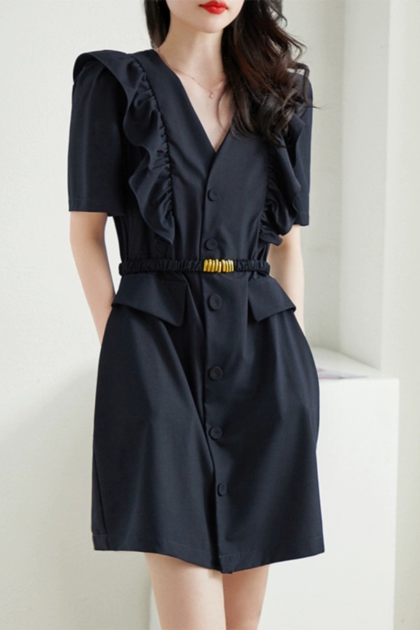 LNNNS 藏青色荷叶边装饰连衣裙 19893