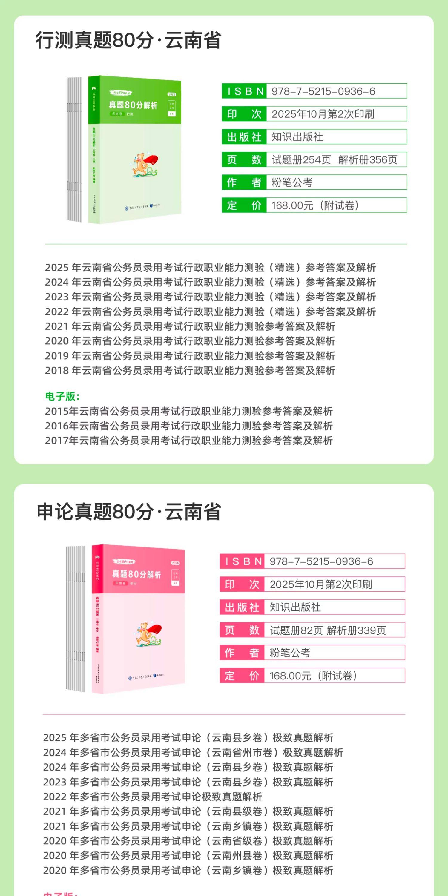 2026云南省公务员行测+申论真题80分套装